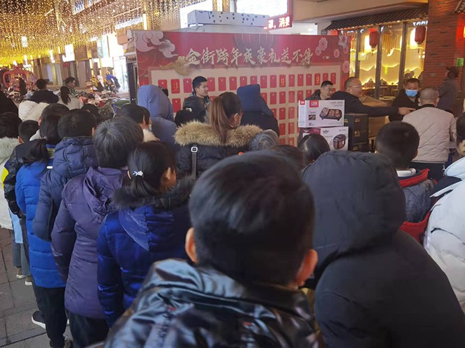 2021年12月31日18时,菏泽万达金街迎来了一年一度的跨年狂欢夜。金街上的商户推出各式各样的优惠活动,使得2021年最后的一个夜晚变得人声鼎沸。