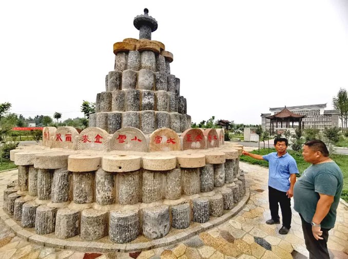 由石蹍、石磙、磨盘组成的时序塔是该村标志性建筑之一