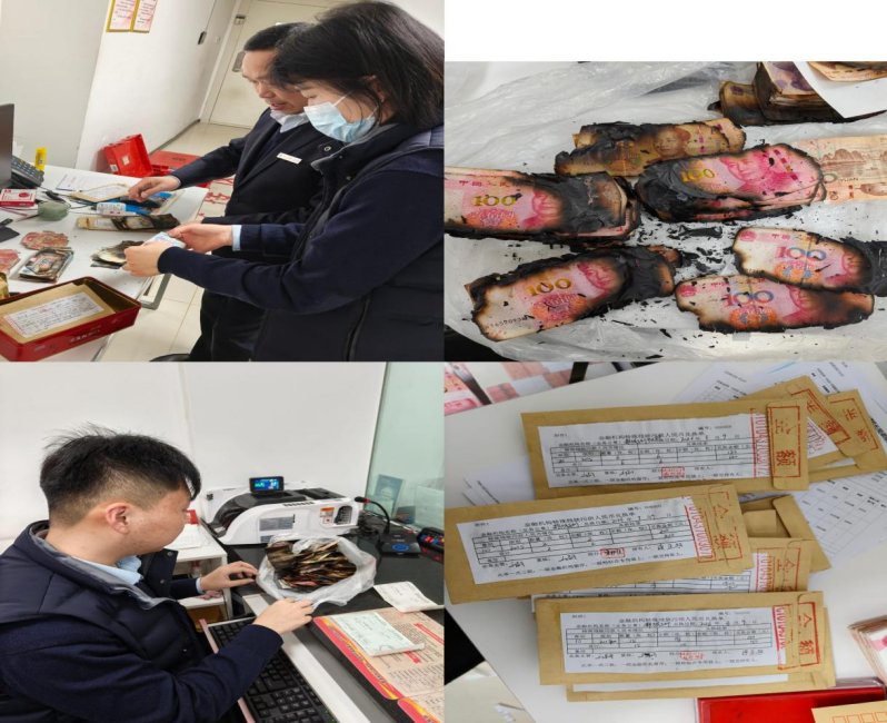 专业鉴定、规范兑换。面对损毁程度极高的火烧币,工作人员严格依照《中国人民银行残缺污损人民币兑换办法》开展专业处置:对符合兑换标准的残币按照“全额兑换”“半额兑换”标准进行分类统计,对无法辨认票面、剩余面积不足规定比例的残币做好登记说明。在客户见证下,完成清点核算后,为客户办理了残损币兑换业务,最大程度降低了客户的财产损失。