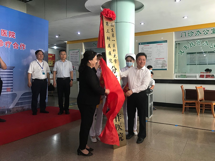 山东第一医科大学第三附属医院与菏泽市牡丹区中心医院进行分级诊疗签约。牡丹区人民政府副区长申瑞萍与山东第一医科大学第三附属医院党委书记徐忠法进行了揭牌。