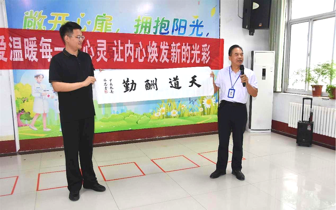 慰问活动前,我院党委委员、纪委书记姜林恩,对大家表示亲切的节日问候,并送上墨宝“天道酬勤”四个大字。