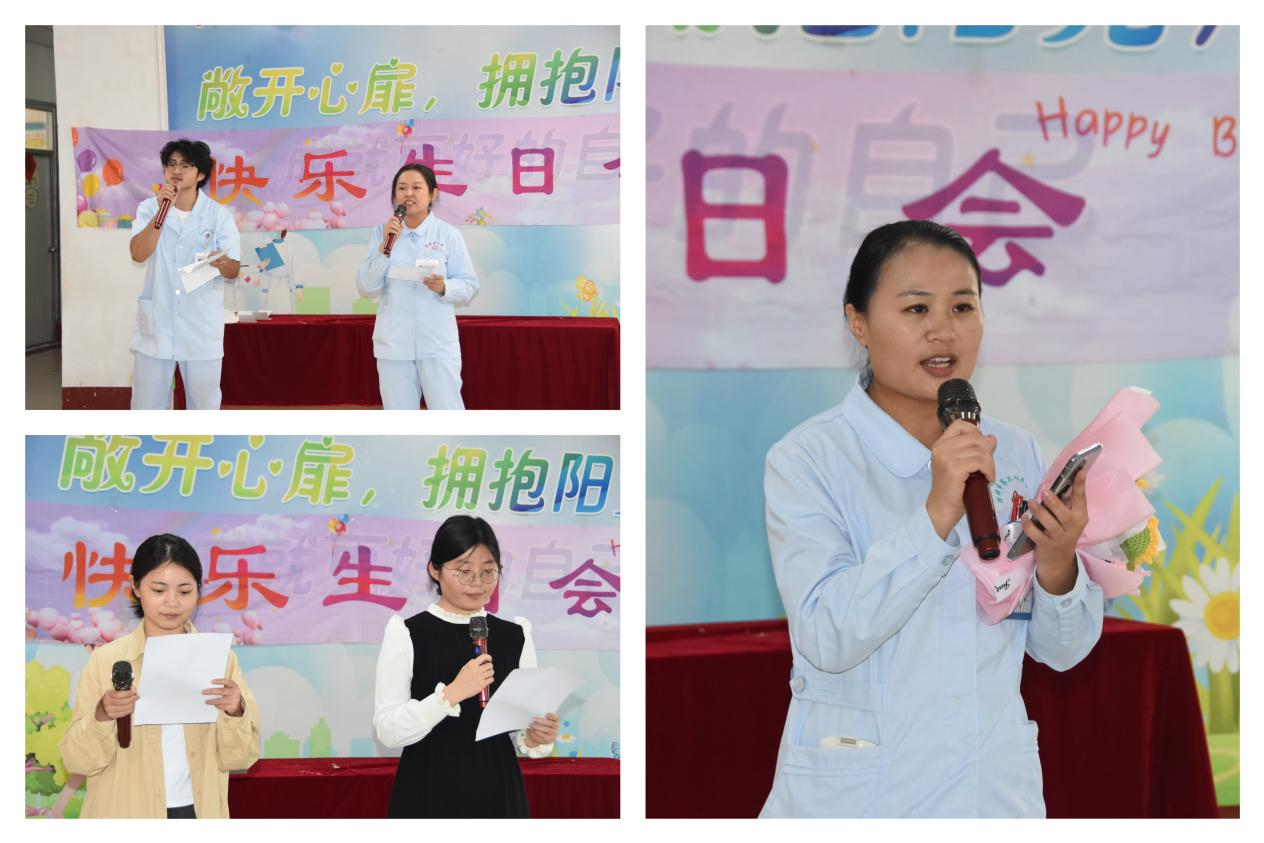 生日会伊始,护理部主任刘红霞为大家送上生日祝福。伴随着生日快乐歌,医护人员为每一位寿星带上生日帽,并将面包、牛奶、火腿肠等小食品发到他们手中。