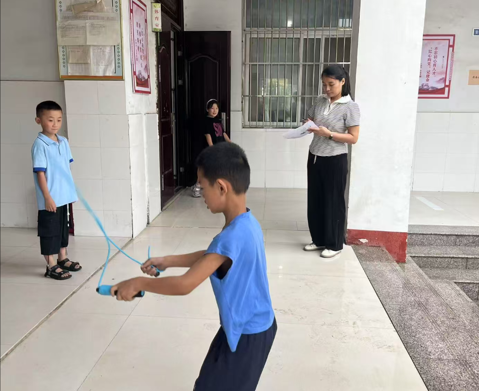 除了语数主科,乐考还涵盖了音乐、体育等学科。音乐关卡里,孩子们一展歌喉,用动听的歌声传递快乐;操场上,体育“小健将”们跳绳、拍球,活力四射。整个活动过程中,老师们担任“考官”,用鼓励的话语和亲切的笑容为孩子们加油助威。每闯过一关,孩子们就能获得一枚可爱的小印章,这不仅是对他们学习成果的肯定,更是他们努力的见证,激励着他们不断挑战自我。