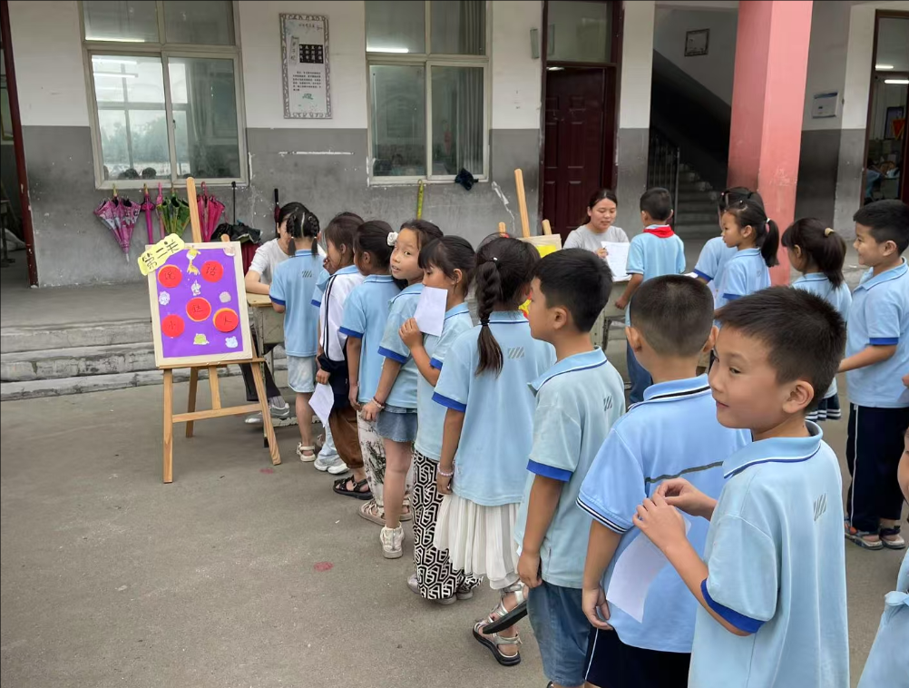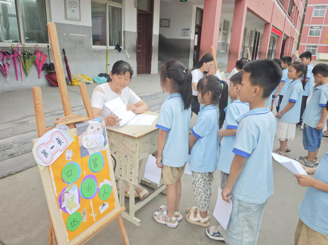 活动现场,校园里变身趣味“闯关乐园” 。“口算小达人”“操作小能手”等特色关卡依次排开,学生们手持答题纸,有序排队挑战。在“第一关” ,老师围绕数学口算等知识展开考查;“第二关”则聚焦实践操作,检验学生动手与知识运用能力 。