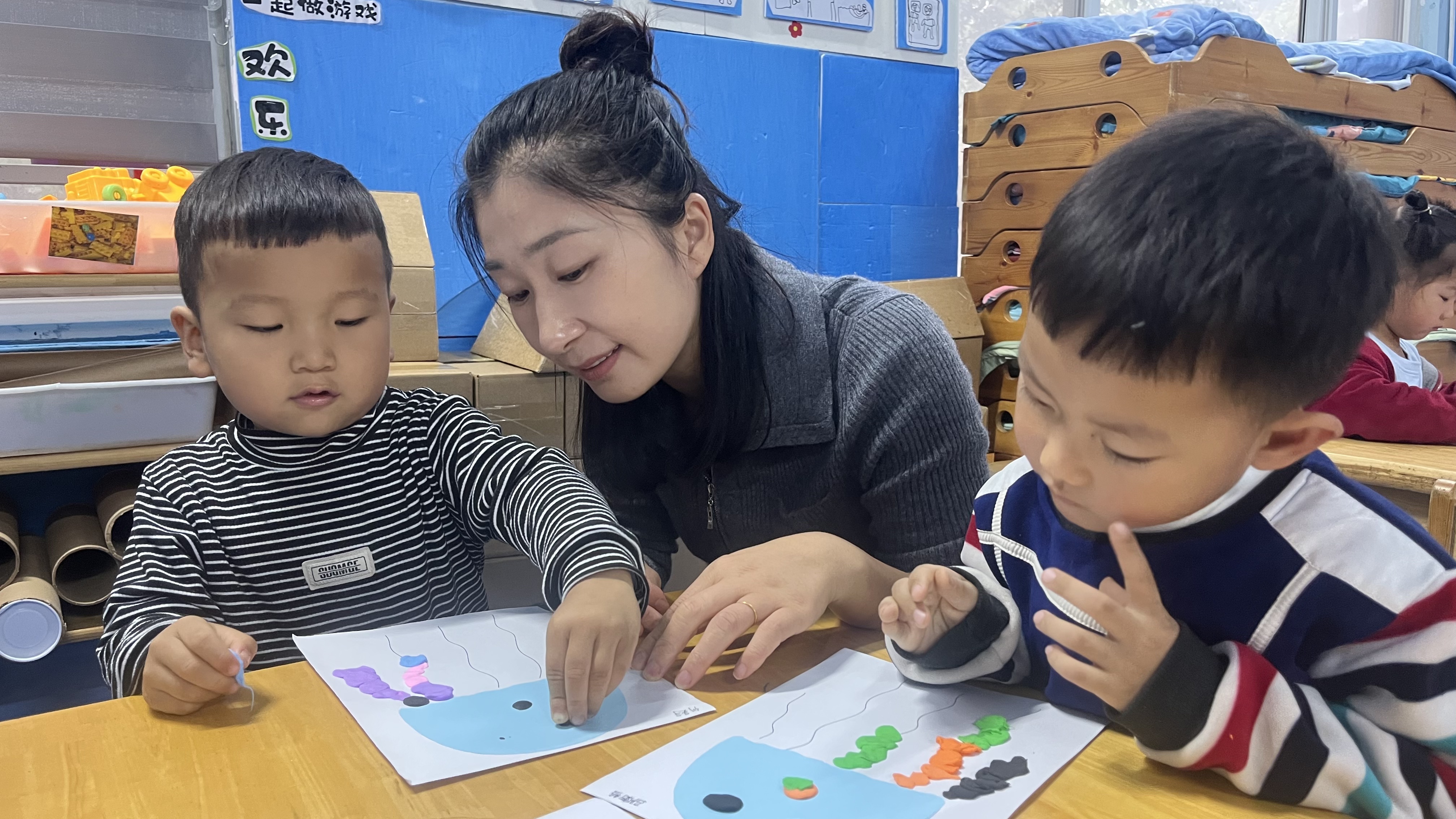 活动前,教师精心准备了彩色橡皮泥、毛根等材料,并通过水母图片和动画片段,让幼儿提前观察水母圆圆的身体、长长的触手及多样颜色,筑牢认知基础。活动伊始,教师以提问导入,引导幼儿说出“水母”并梳理其外形特征,激发参与兴趣。随后,教师示范“团、按压”等操作技巧,分步讲解水母制作流程。幼儿自主选择颜色创作时,教师巡回指导,帮助动作不熟练的幼儿练习,鼓励大胆搭配色彩。