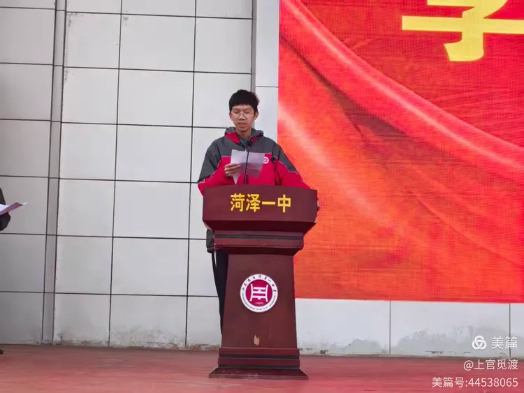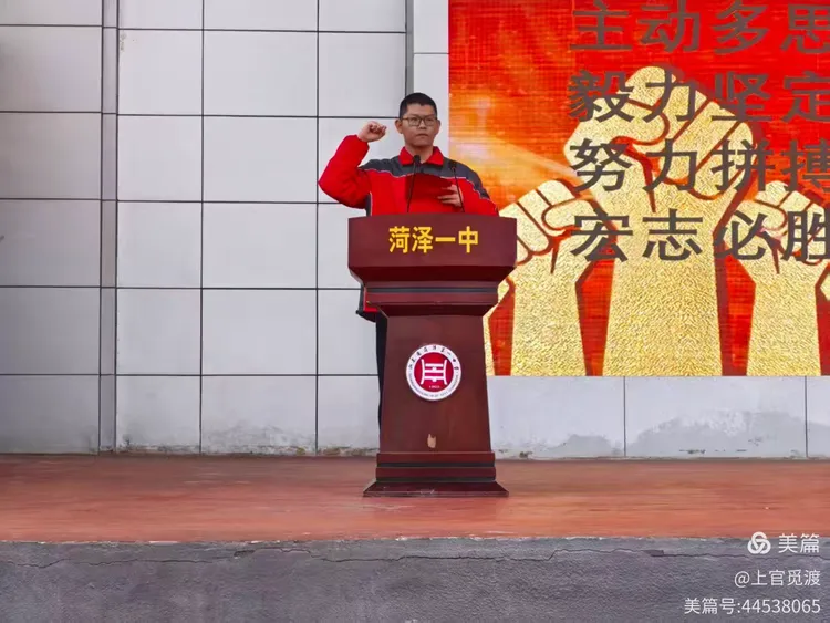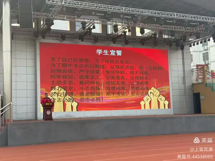 仪式第五项学生宣誓。在这个光荣的时刻,全体同学在六班苏浩宇同学的带领下,用最嘹亮的声音,喊出了青春的誓言,宣告胜利的决心。