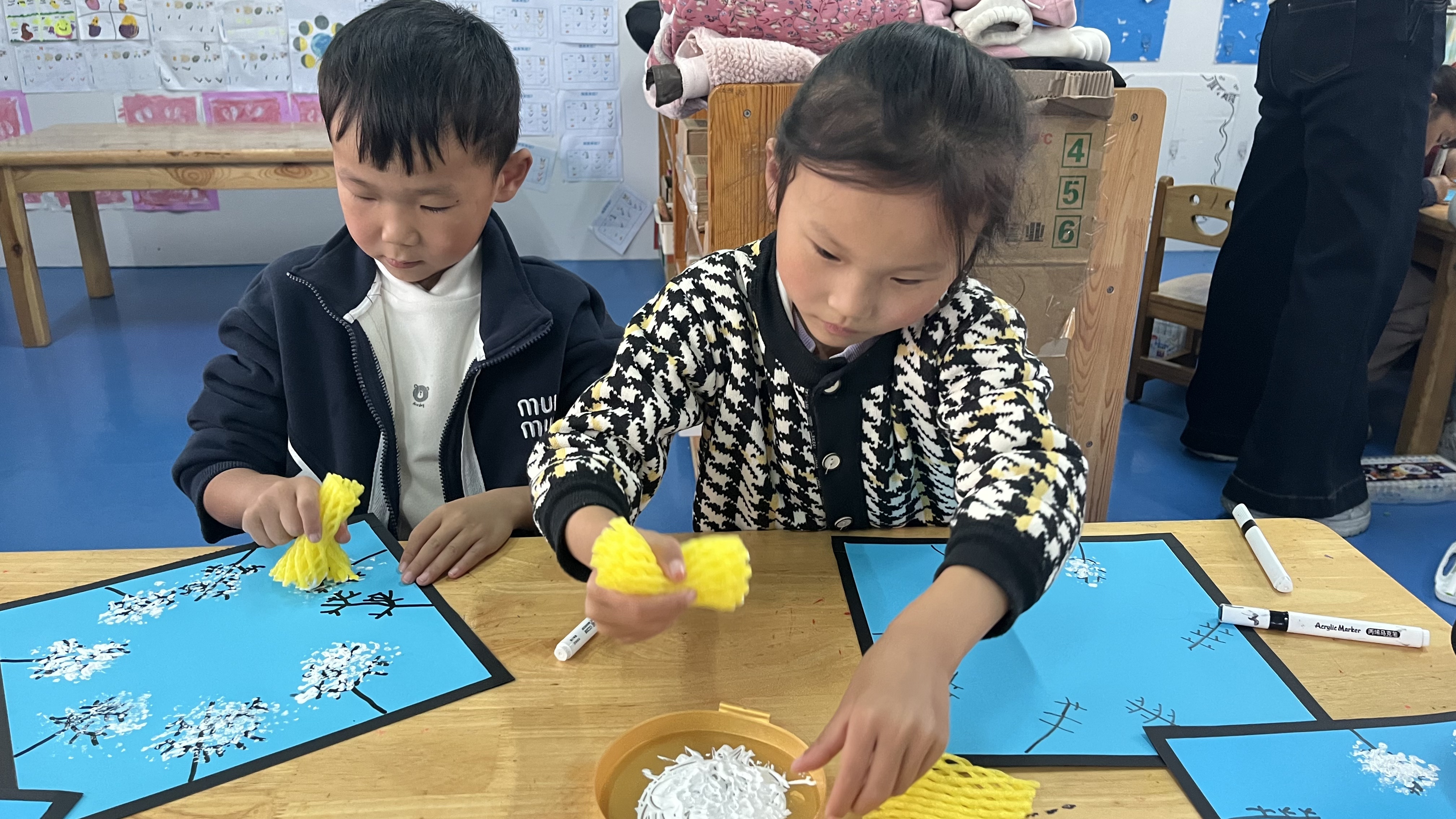 本次活动不仅让幼儿掌握了印、刷等绘画技巧,加深了对冬季特征的认知,又让他们在创作中感受自然之美,进一步萌发了对艺术活动的热爱。