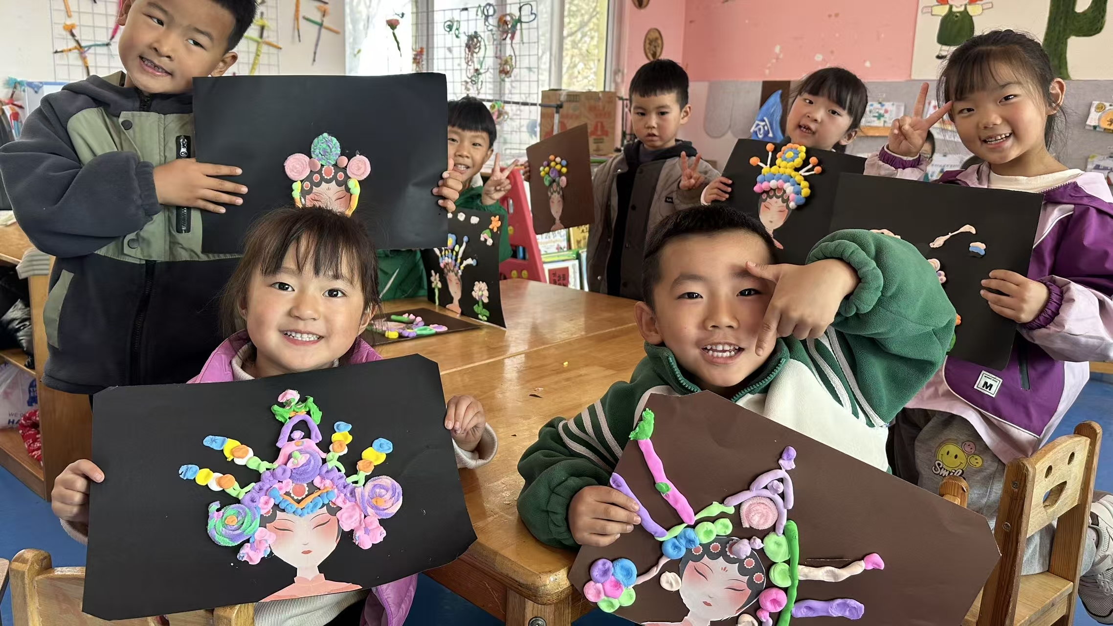 此次活动让幼儿在操作中理解对称与规律的美学原理,熟练运用多种材料的特性,既体验了手工创作的乐趣,又加深了对京剧文化的认知。