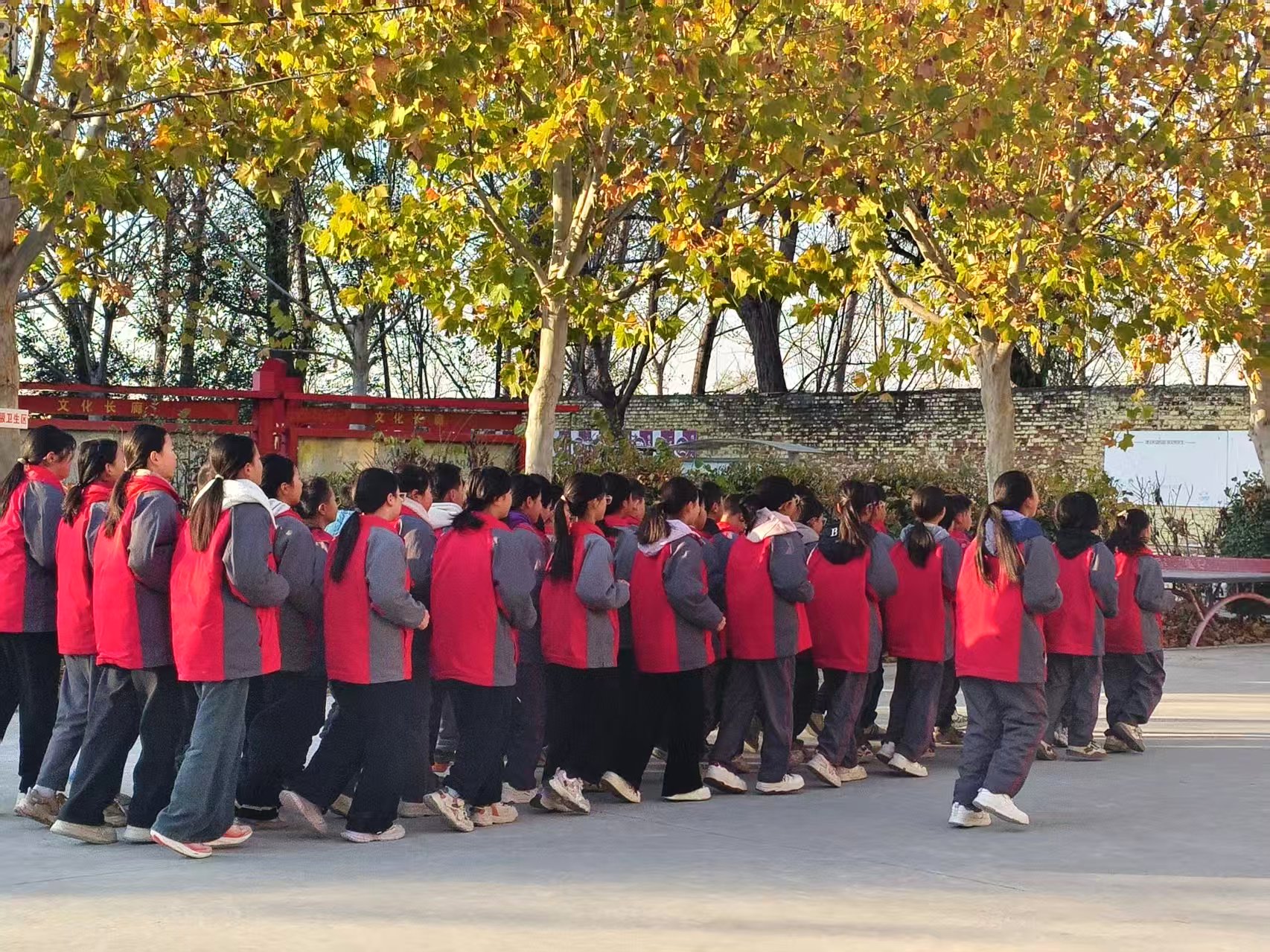 比赛中,同学们以饱满的热情投入每一个环节。从队列变换到动作展示,从口号呼号到精神风貌,大家神情专注、动作规范,左转、右转、后转皆精准有力。班主任们全程陪伴,用眼神鼓励、用手势指引,与同学们并肩作战;评委老师们秉持公平公正原则,从队列整齐度、动作标准性、精神面貌等维度细致打分,现场秩序井然。