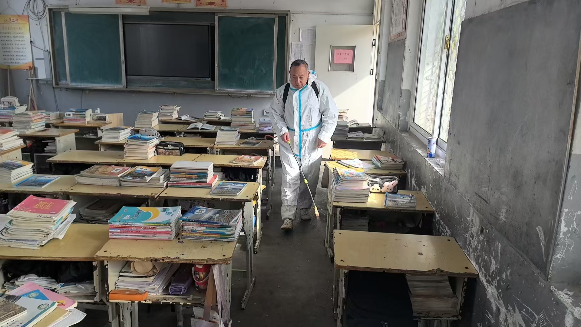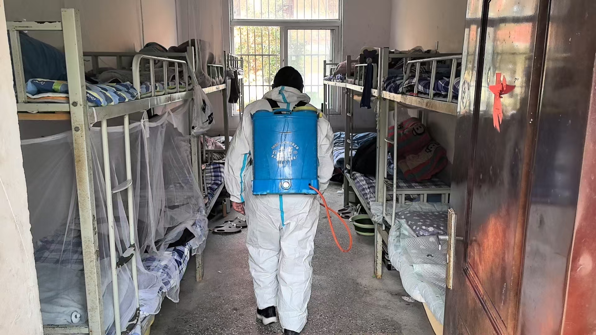 在教室,消杀人员对课桌椅、讲台、门窗、地面进行细致喷洒和擦拭,确保每个角落都覆盖到位;在宿舍,重点对床铺、地面及公共洗漱区域进行消杀,为学生营造洁净的居住环境。此外,学校还安排专人对消杀工作进行全程监督记录,确保消杀工作规范、有效、落地见效。