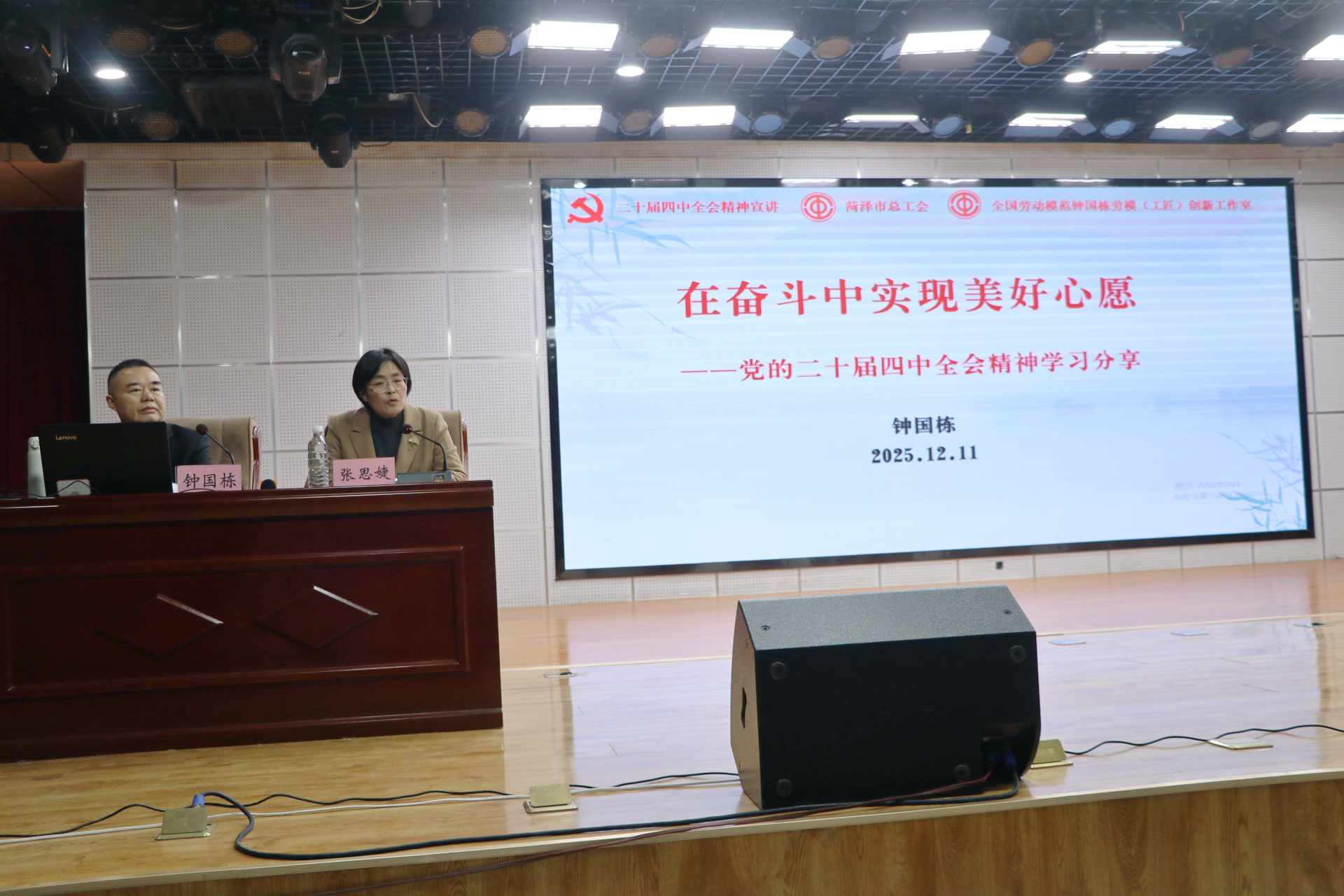 为深入学习贯彻党的二十届四中全会精神,弘扬劳模精神、工匠精神,2025年12月11日,菏泽技师学院特邀全国劳动模范、齐鲁工匠、菏泽博爱手外显微骨科医院首席专家钟国栋,开展党的二十届四中全会精神暨劳模事迹宣讲报告会。学院党委委员、副院长张思婕主持报告会,师生代表齐聚现场,聆听劳模分享,感悟时代精神。