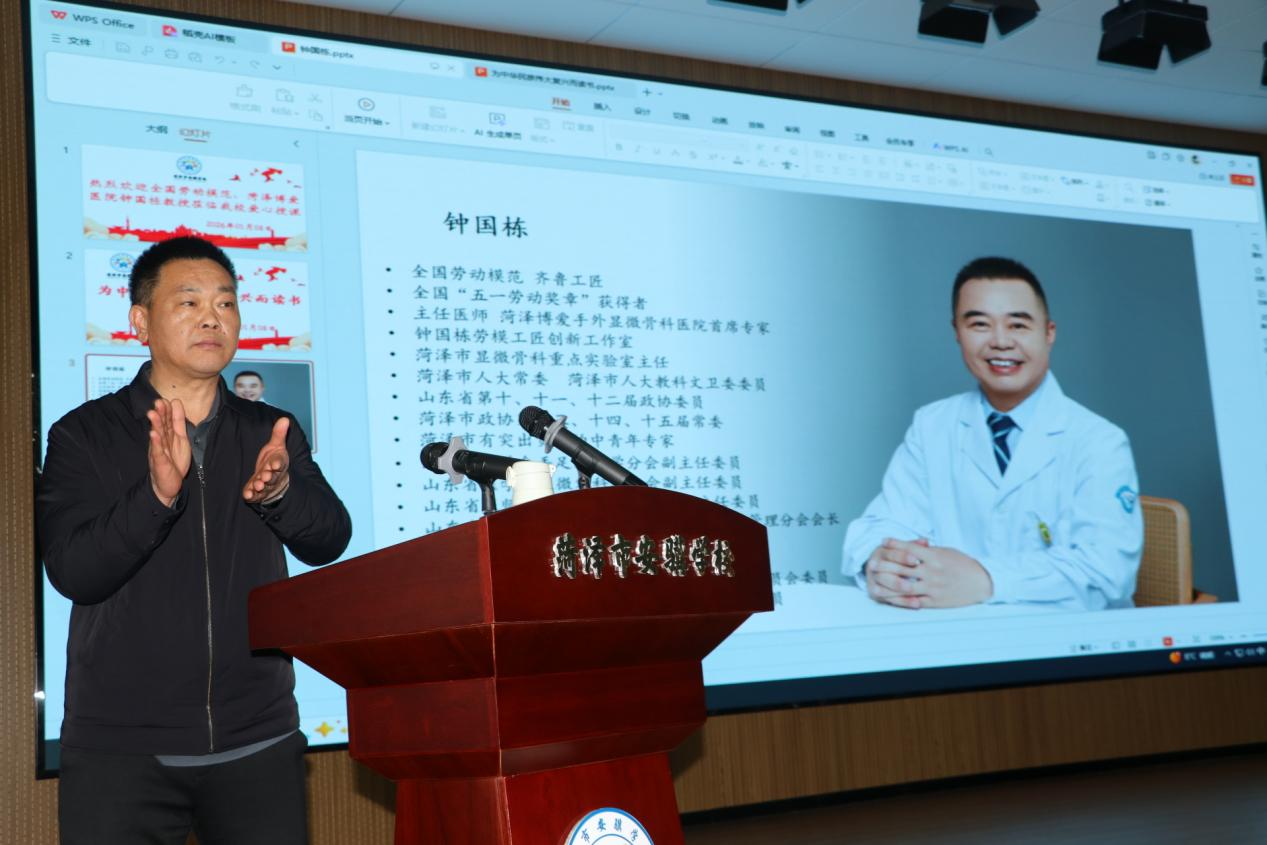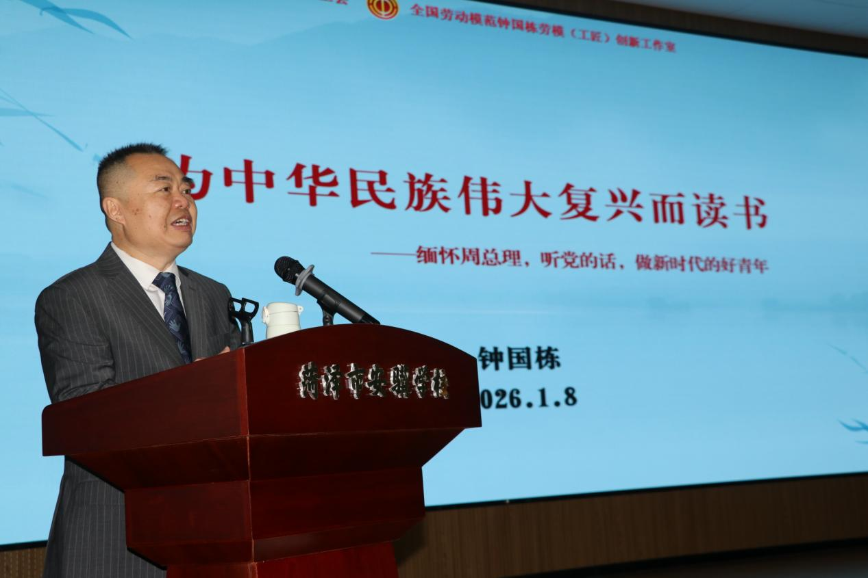 2026年1月8日,正值周恩来总理逝世五十周年纪念日,为深切缅怀伟人风范,厚植青少年爱国情怀,全国劳动模范、菏泽博爱医院首席专家钟国栋受邀走进菏泽安骥学校,以《为中华民族伟大复兴而读书—缅怀周总理,听党的话,做新时代的好少年》为题开展爱心授课,全校师生齐聚现场,在追思与感悟中接受深刻的精神洗礼。