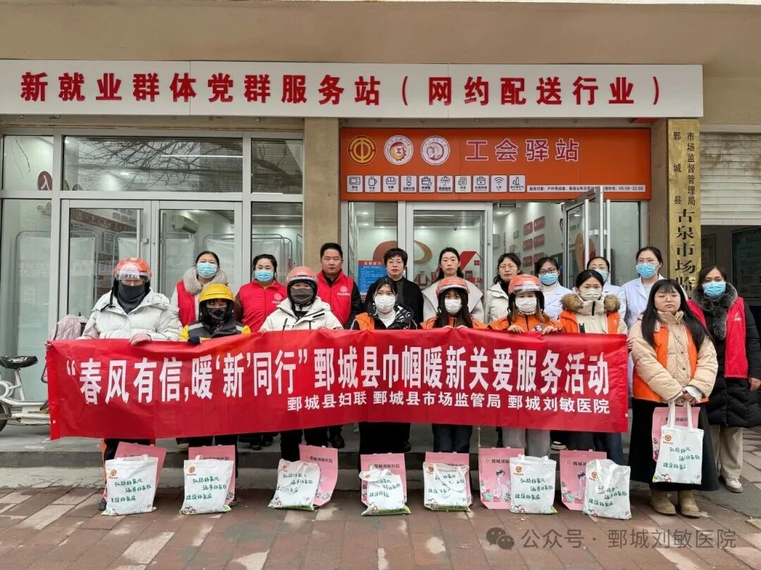 三月春风暖,巾帼绽芳华。在“三八”国际妇女节来临之际,为切实关爱广大女性身心健康,传递党和政府的温暖,鄄城县妇联、鄄城县市场监管局、鄄城刘敏医院 三方联动,共同举办“春风有信暖新同行”巾帼暖新关爱活动,以科普宣教、权益宣传等形式,为鄄城县女骑手同胞们送上一份特别的节日祝福。