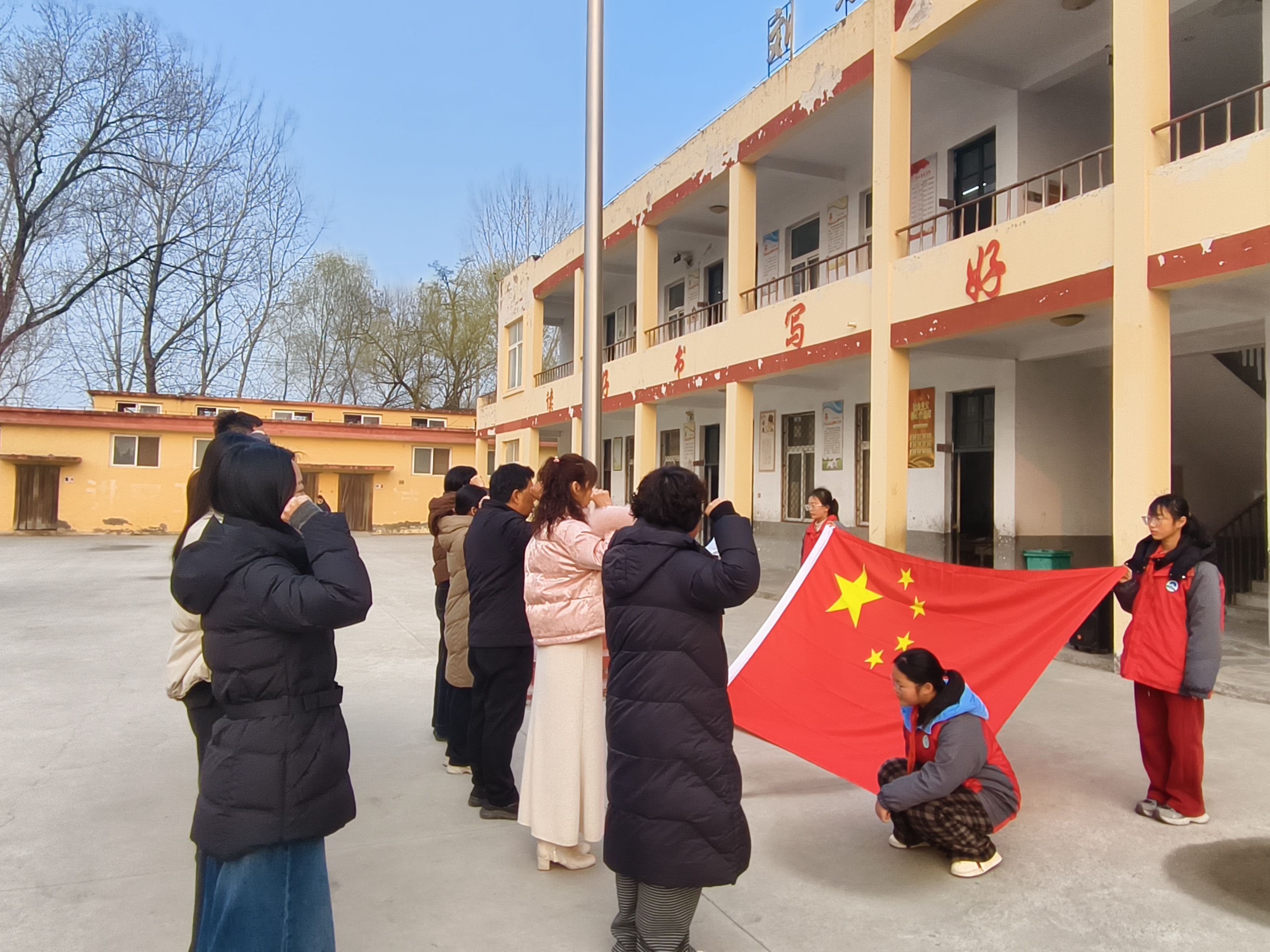 领誓人陈欢欢带领全体教师进行庄重宣誓:“我宣誓,我志愿成为一名人民教师,忠诚于党的教育事业,遵守教育法律法规,履行教书育人职责……”全体教师紧握右拳,目光坚毅,面向国旗,誓言掷地有声。这是是每一位教师的自我期许,更是对教育事业的庄严承诺。