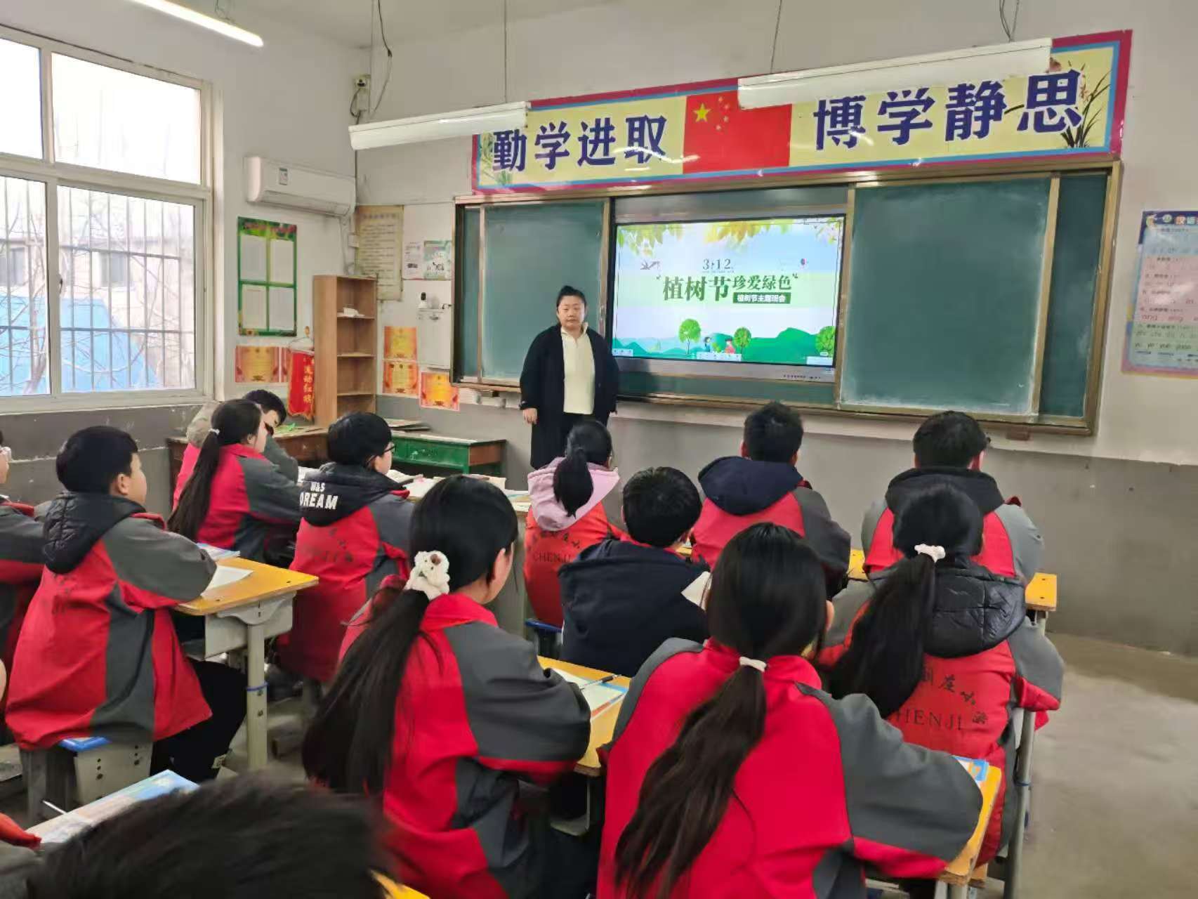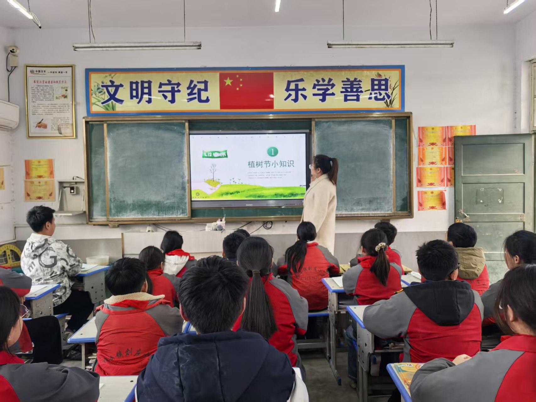 活动伊始,各班开展了“植树节”主题班会。各班级开展形式多样的主题班会,向孩子们介绍植树节的由来、意义。老师们讲解植树步骤、树木养护知识及生态价值,让绿色理念深入人心 。孩子们瞪着好奇的眼睛,聚精会神地聆听,不时发出阵阵惊叹,小小的教室里充满了学生们对大自然的热爱与探索。