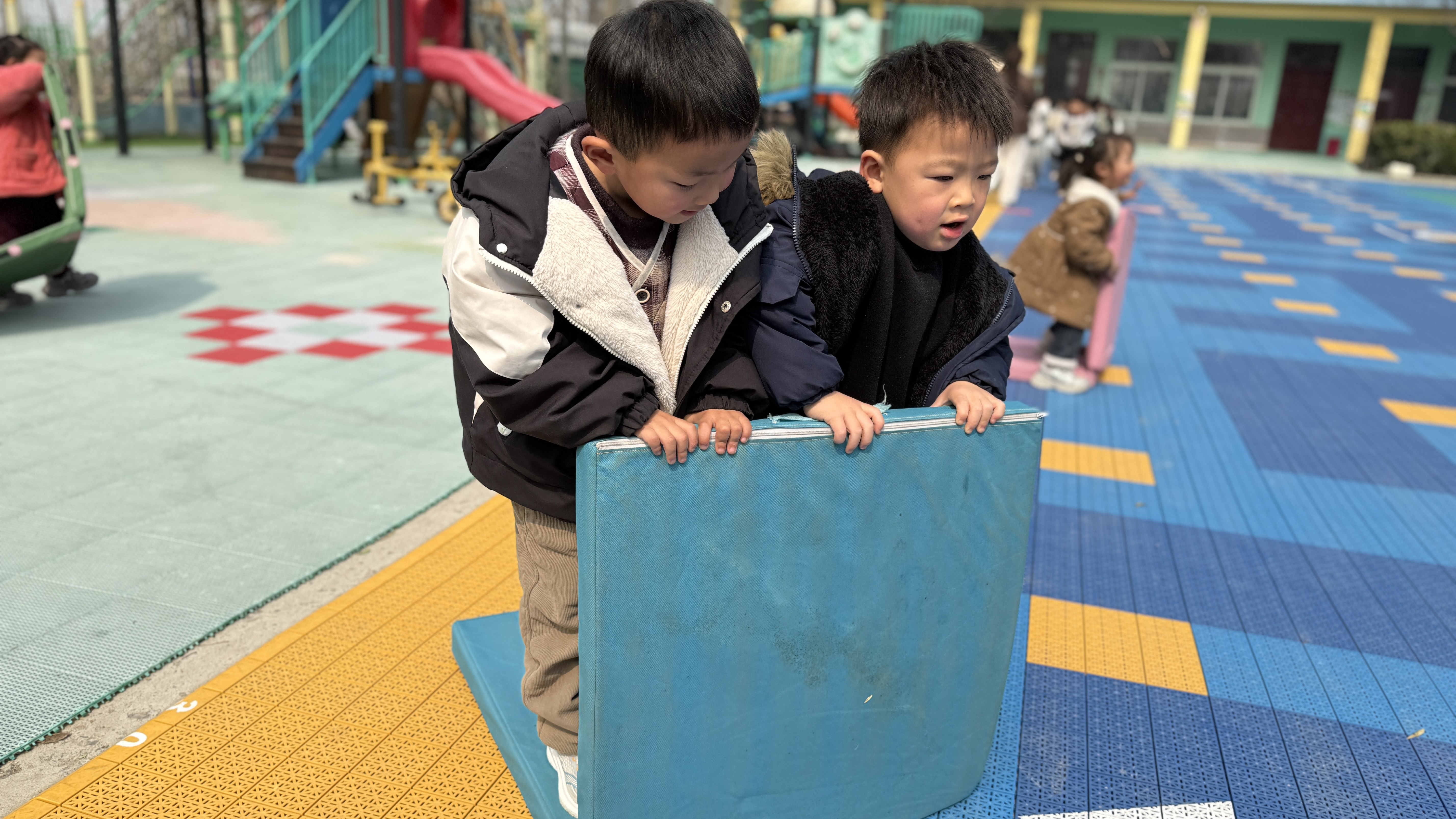 活动中,教师先向幼儿介绍跳跳垫的使用方法,完整示范手持软垫跳跃的核心动作,细致讲解“抓稳、踩牢、向前跳”的动作要领和安全规则。随后幼儿两两分组,依次开展跳跃挑战,教师在旁巡回指导,手把手帮助幼儿调整姿势,鼓励孩子们大胆尝试连续跳跃,孩子们个个化身勇敢的小跳蛙,在欢快的氛围中完成一次次跳跃挑战,现场充满欢声笑语。