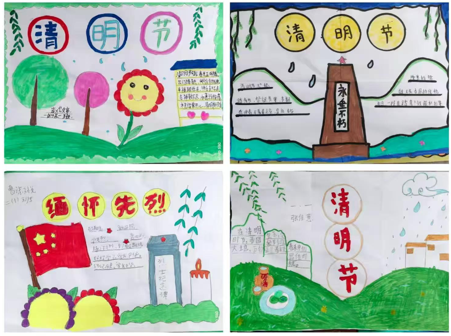 教师们召开清明节红色教育主题班会,学生们认真聆听红色故事,时刻铭记烈士们为国家和民族而不惜牺牲生命的大无畏精神,传承红色基因,追寻红色记忆。学生们观看红色电影,演唱红色歌曲,绘制清明节手抄报,进行以清明节“缅怀革命先烈,传承革命精神”为主题的作文写作。学生通过自己的方式来缅怀先烈,铭记历史,弘扬英烈精神。