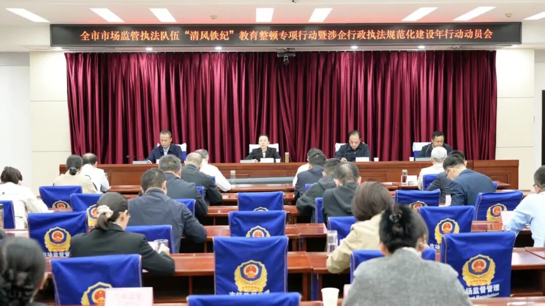 速豹新闻网 东鹏4月22日下午,菏泽市市场监管执法队伍清风铁纪教育整顿专项行动暨涉企行政执法规范化建设年行动动员会在市市场监管局召开