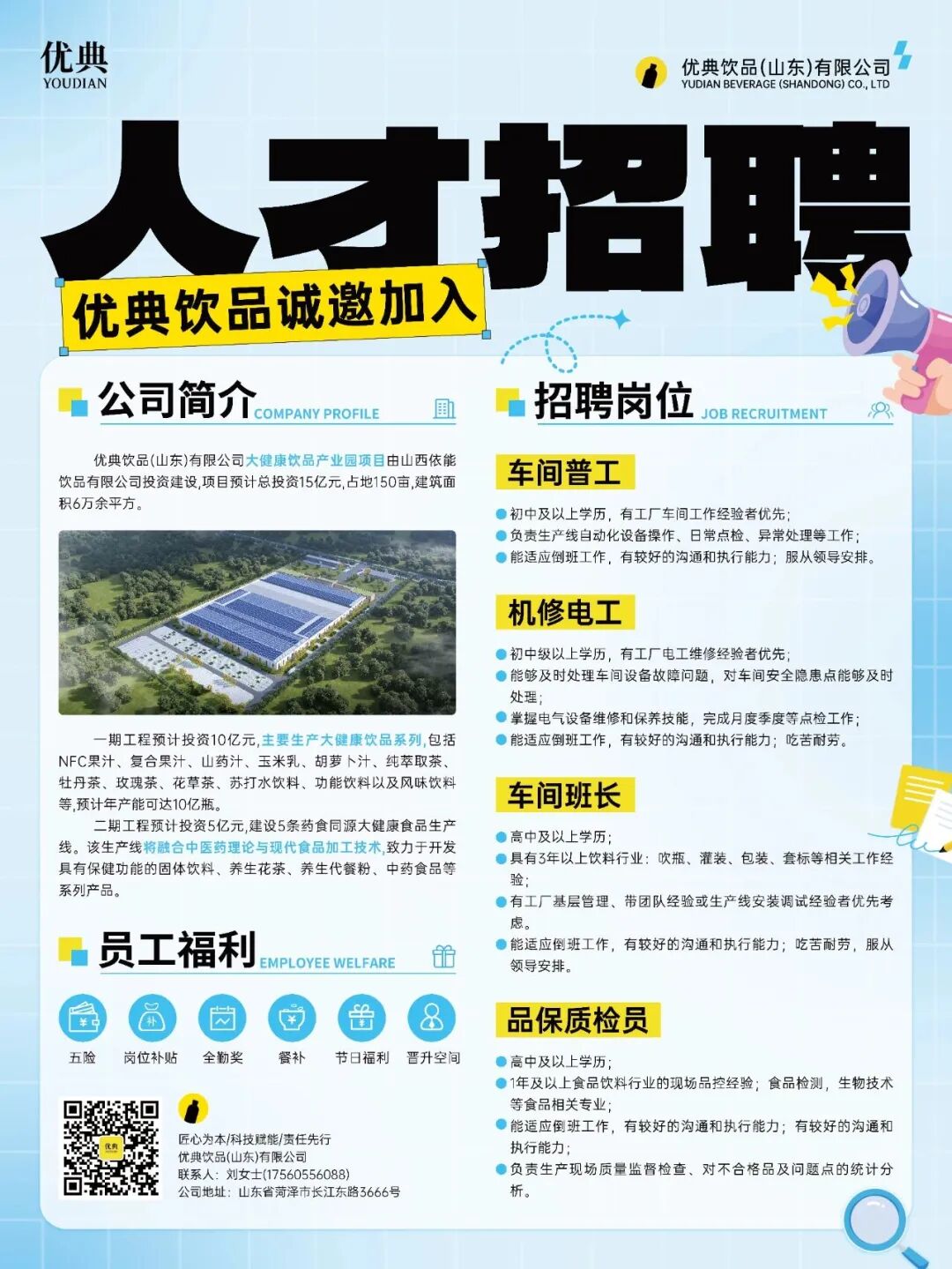 优典饮品(山东)有限公司成立于2024年,注册资本10000万元。项目位于鲁西新区,总投资15亿元,占地135亩,总建筑面积12万平方米。本项目建