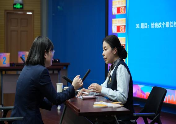 个人争霸赛环节,营业员、投诉处理员、客户经理、装维人员四大条线参赛选手,个个精神饱满、斗志昂扬,竞技盛宴精彩绝伦;团队PK环节,面对激烈的“抢答”,选手们思维敏捷,气氛紧张而热烈,面对服务“风险”,各团队深思熟虑,勇闯难关,团队之间充分协作,展示出扎实的专业知识和服务水平。