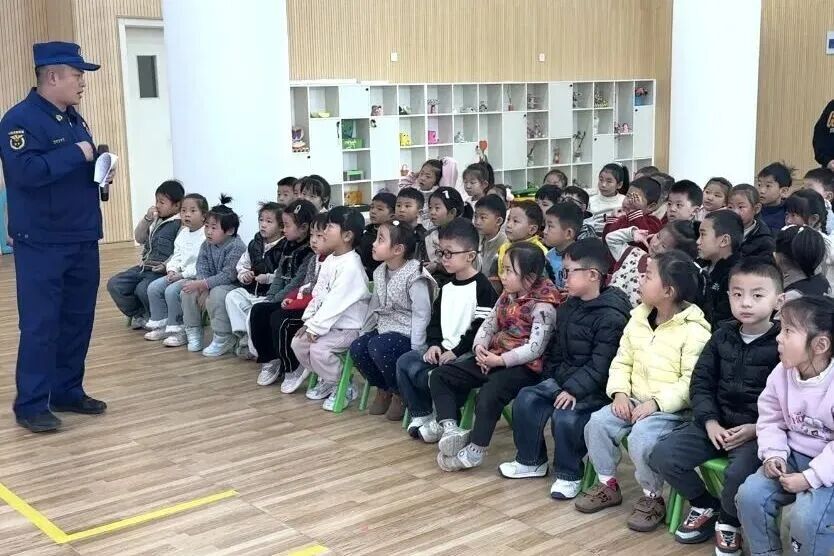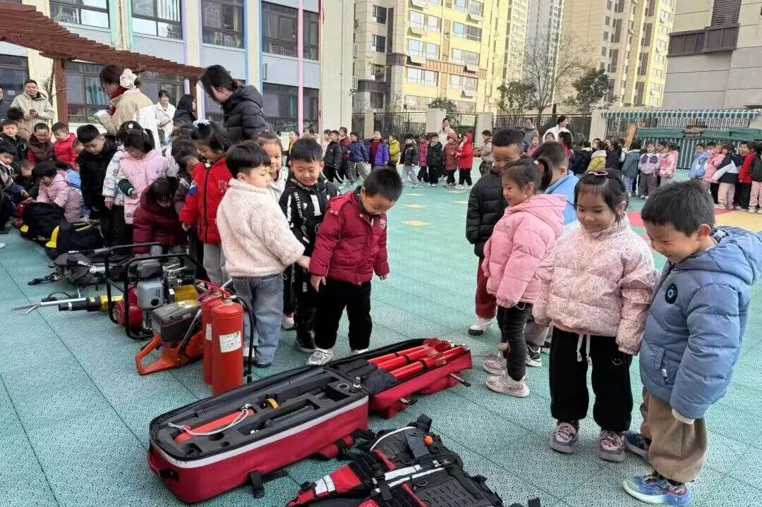 来自牡丹区消防救援大队的大一班孩子爸爸们带来了“消防车进校园”主题活动。在多功能厅,消防员通过卡通课件讲解火灾预防与逃生知识。户外场地,孩子们近距离参观消防车,亲手触摸消防水带、灭火器等器材,穿戴迷你消防装备化身“小小消防员”,在消防员叔叔的指导下感受消防魅力。在趣味拔河赛中,消防员叔叔与孩子们分组竞技,在欢声笑语中传递团结协作的力量。活动尾声,孩子们还将亲手制作的手工礼物送给消防员叔叔,用相机定格下温暖瞬间。