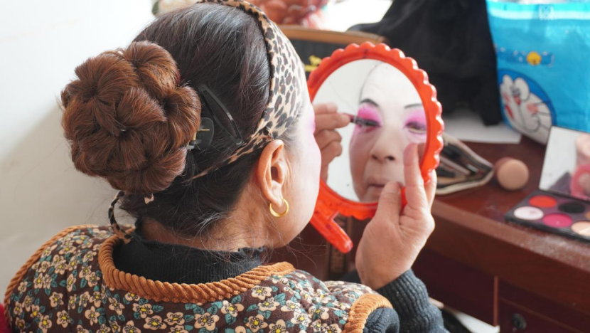 演出开始前,临时搭建的化妆间里早已一派忙碌景象。演员们对着便携化妆镜,仔细勾描眉眼、粘贴头饰,将各色油彩细致地涂在脸上;负责伴奏的乐手也没闲着,反复调试着弦子、梆子等乐器,为演出做足准备。