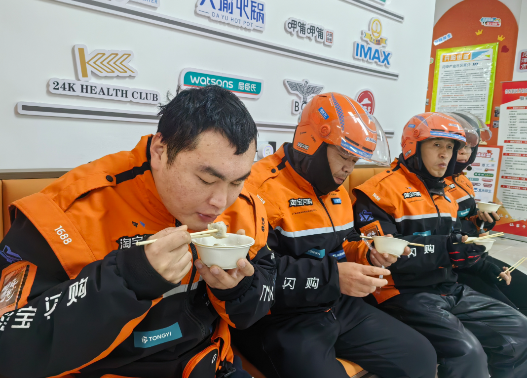 “快来吃碗热饺子暖暖身!”随着外卖骑手们陆续抵达,丹华产业社区党支部书记彭建国连忙带领工作人员热情迎上前,将刚出锅、冒着热气的饺子递到骑手手中。接过饺子,骑手们的脸上瞬间漾起欣慰的笑容。“这天儿太冷了,跑单的时候冷风往骨头里钻,能吃上社区特意准备的热饺子,真是又暖胃又暖心!”骑手王师傅由衷感慨。