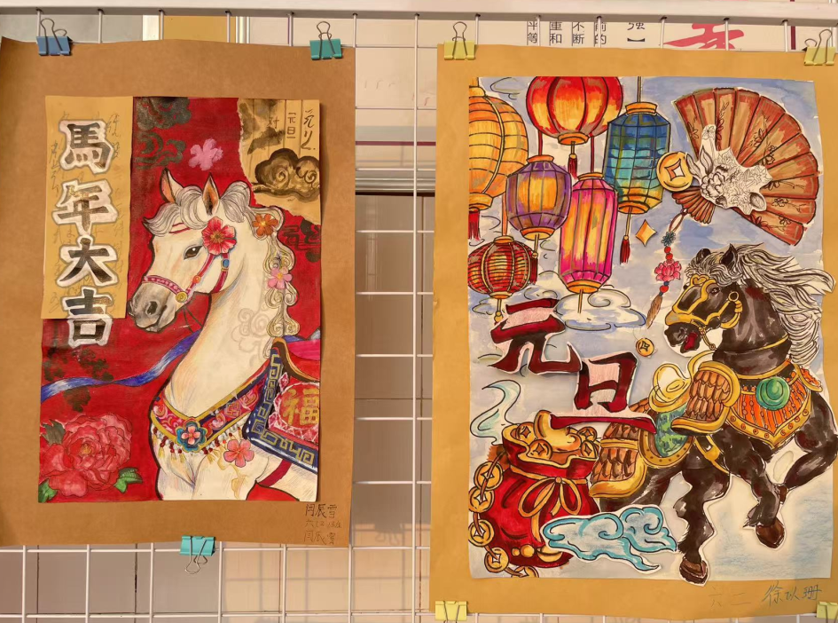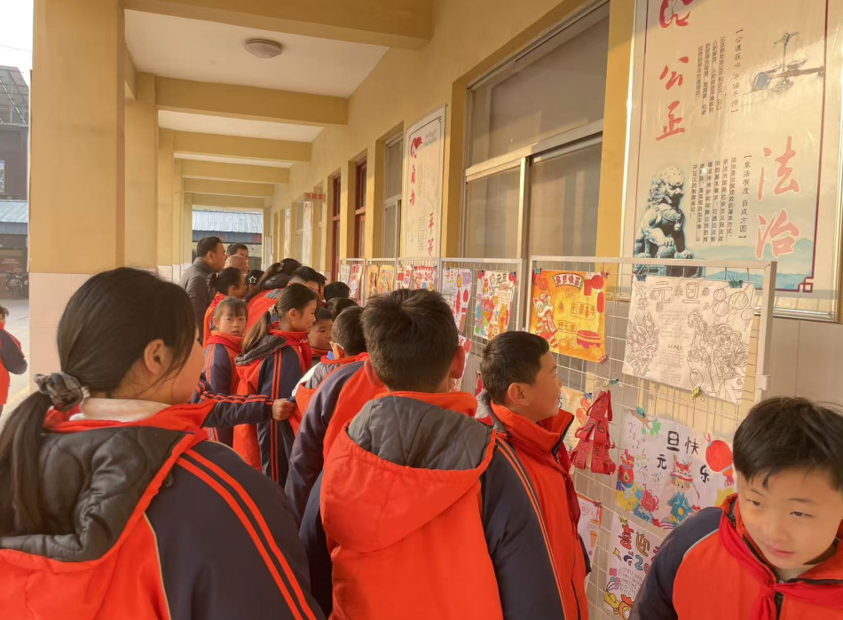 本次活动覆盖全校各年级,设置“绘画创作”“手工制作”两大核心板块,兼顾多样性与创新性,让学生充分发挥想象力;各班级有序组织创作,学生热情高涨,主动分享创意思路,互帮互助完成作品;美术教师全程巡指导,针对构图、色彩搭配、材料运用等问题耐心答疑,鼓励学生大胆创新,突破传统创作模式。最终全校共收集绘画作品100余份、手工作品50余件,作品质量远超预期。优秀作品通过校园宣传栏、教学楼走廊集中展示,部分精致手工作品用于校园元旦装饰,让校园处处洋溢着新年气息与艺术氛围,吸引师生驻足观赏点赞。