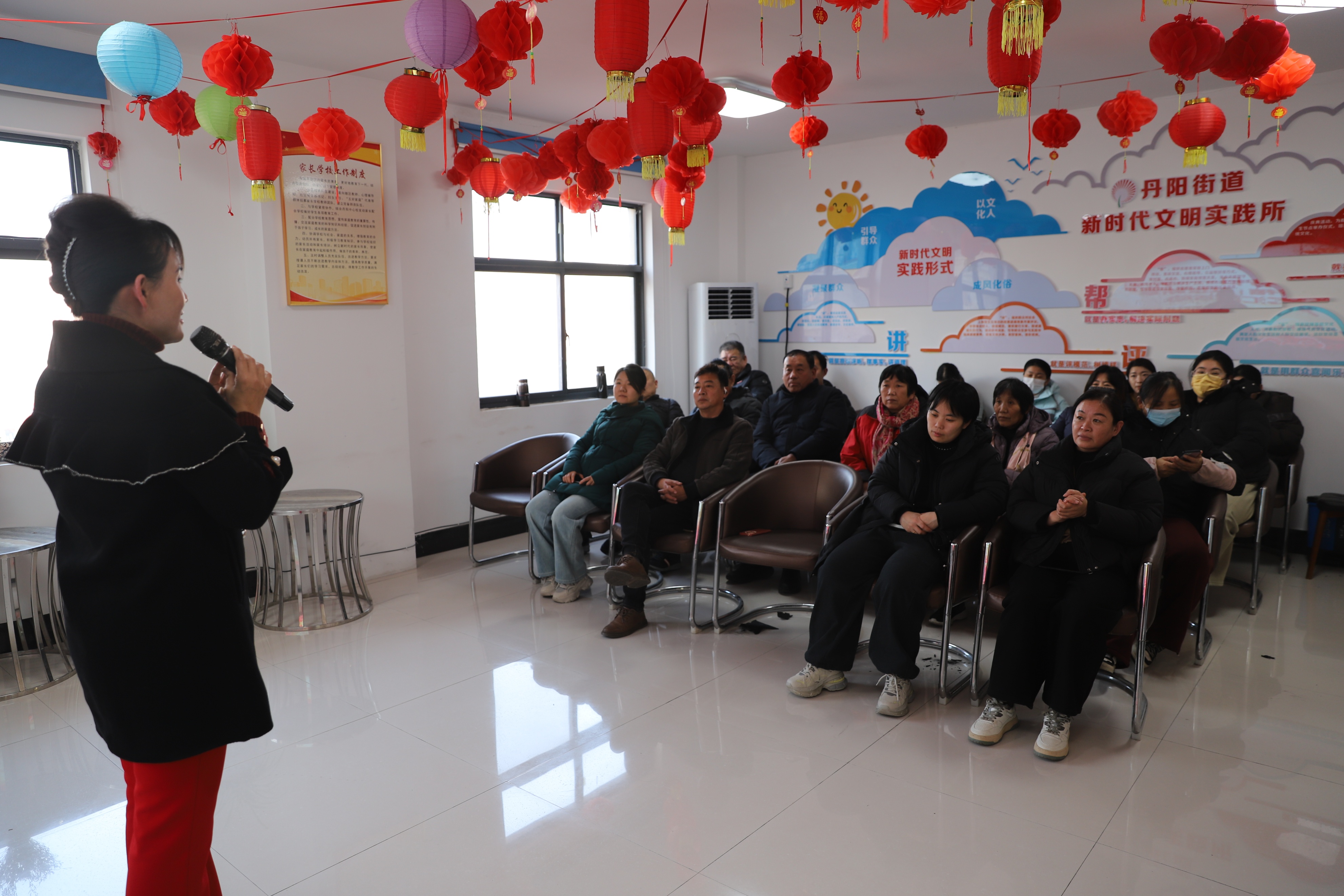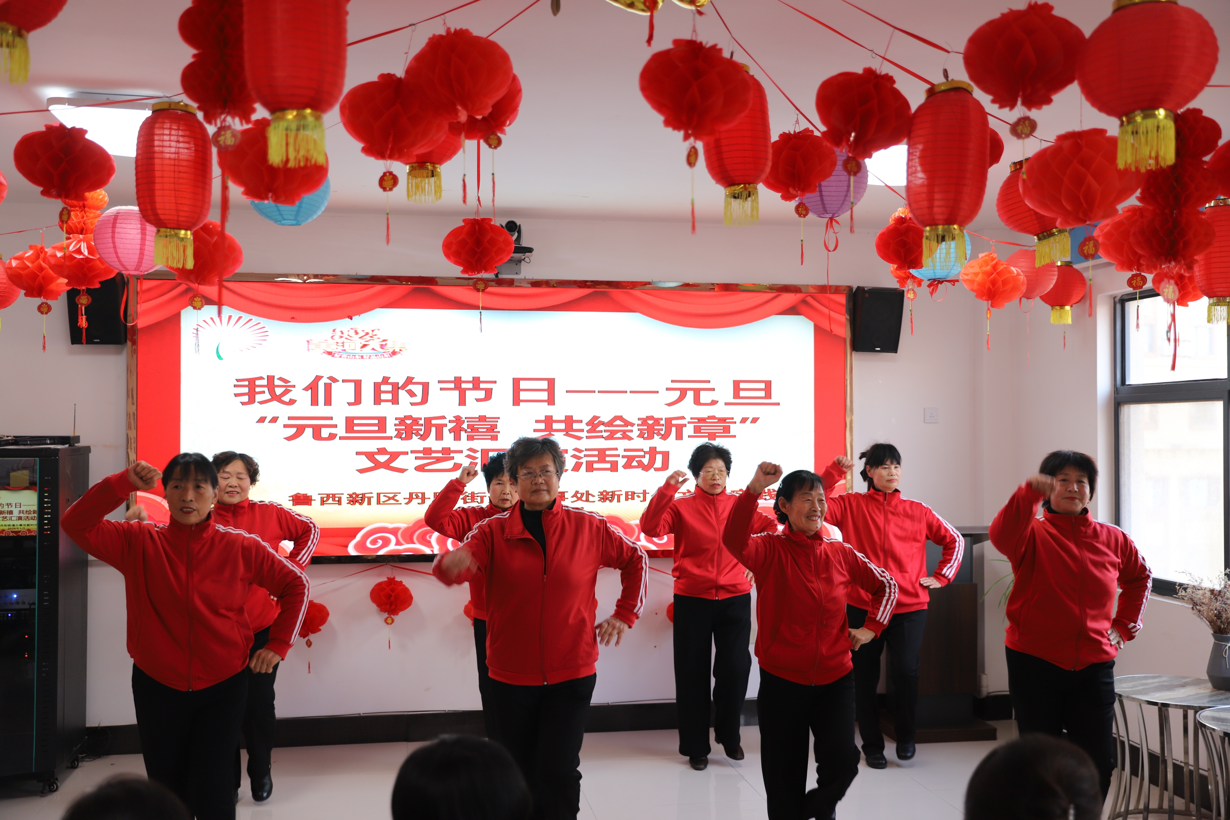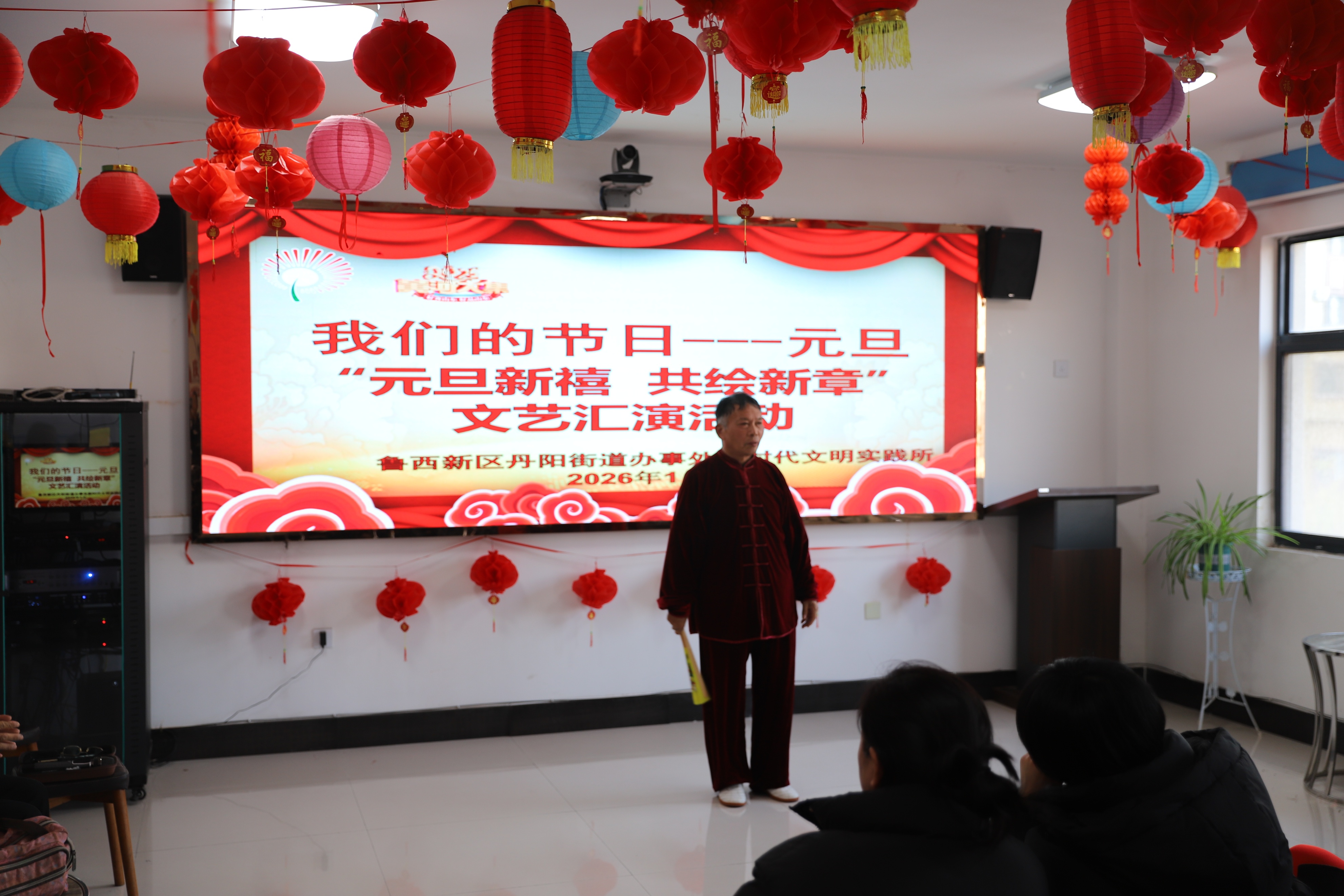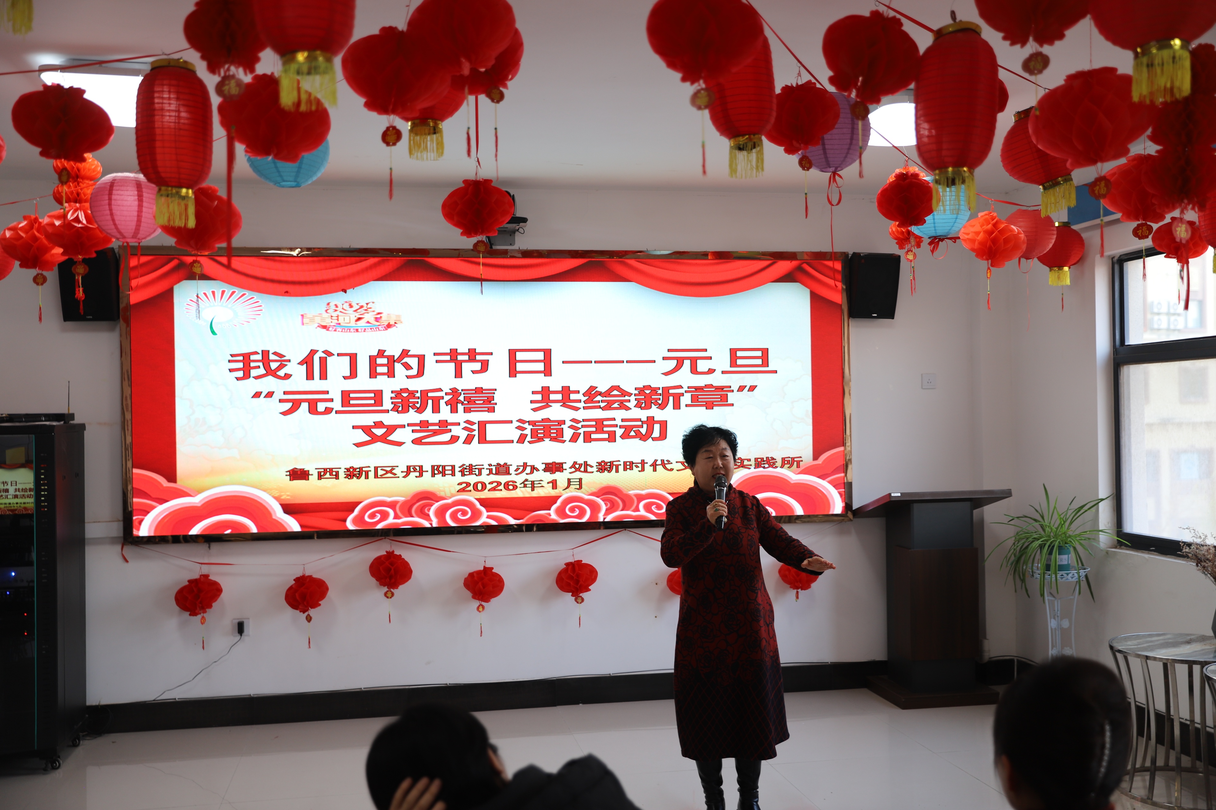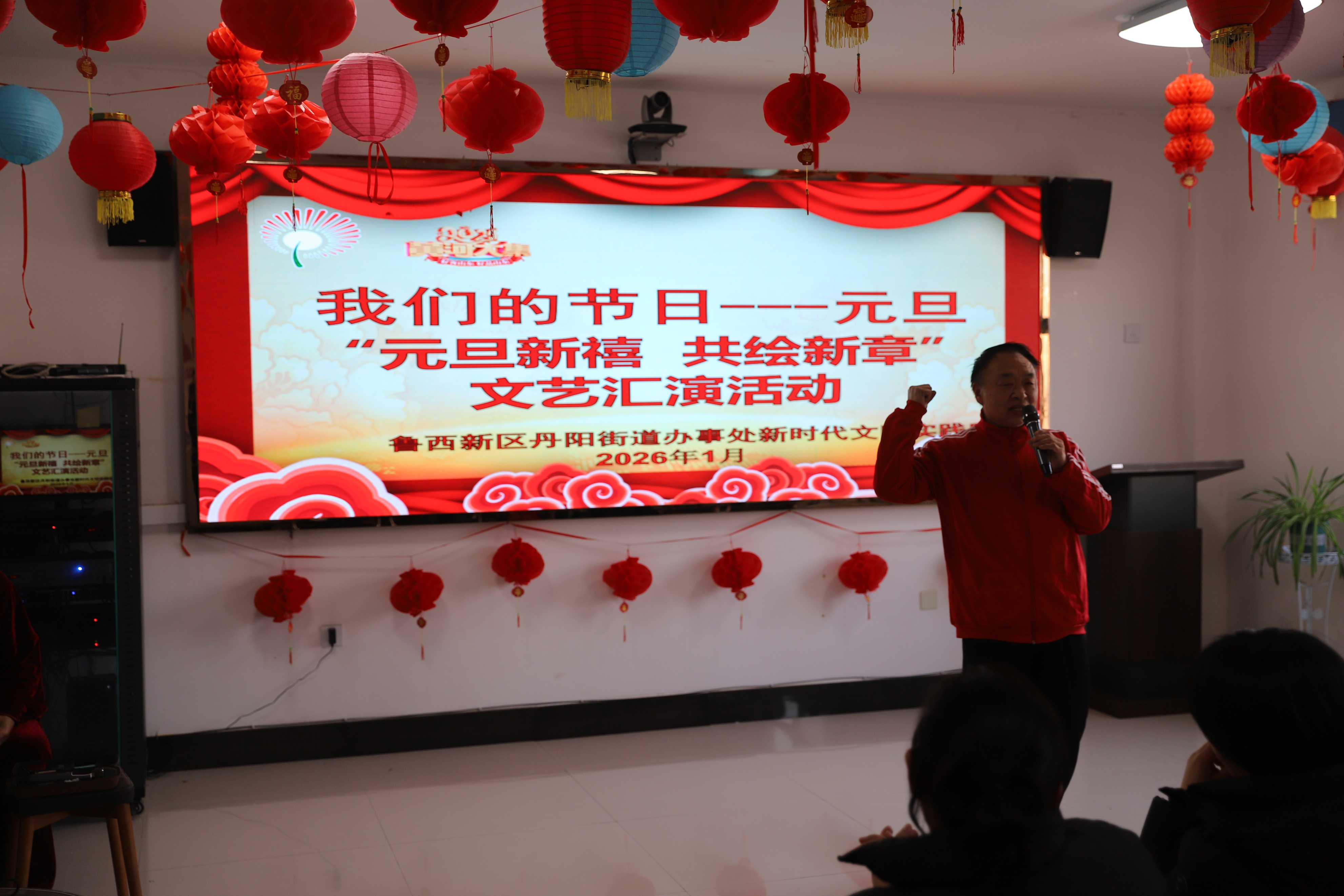 灯笼高挂,笑声满场。元旦当天,菏泽西新区丹阳街道新时代文明实践所内暖意融融,“我们的节日 —元旦” 暨 “元旦新禧 共绘新章” 文艺汇演活动热闹开演,居民们欢聚一堂,在笑声中迎接新年的到来。