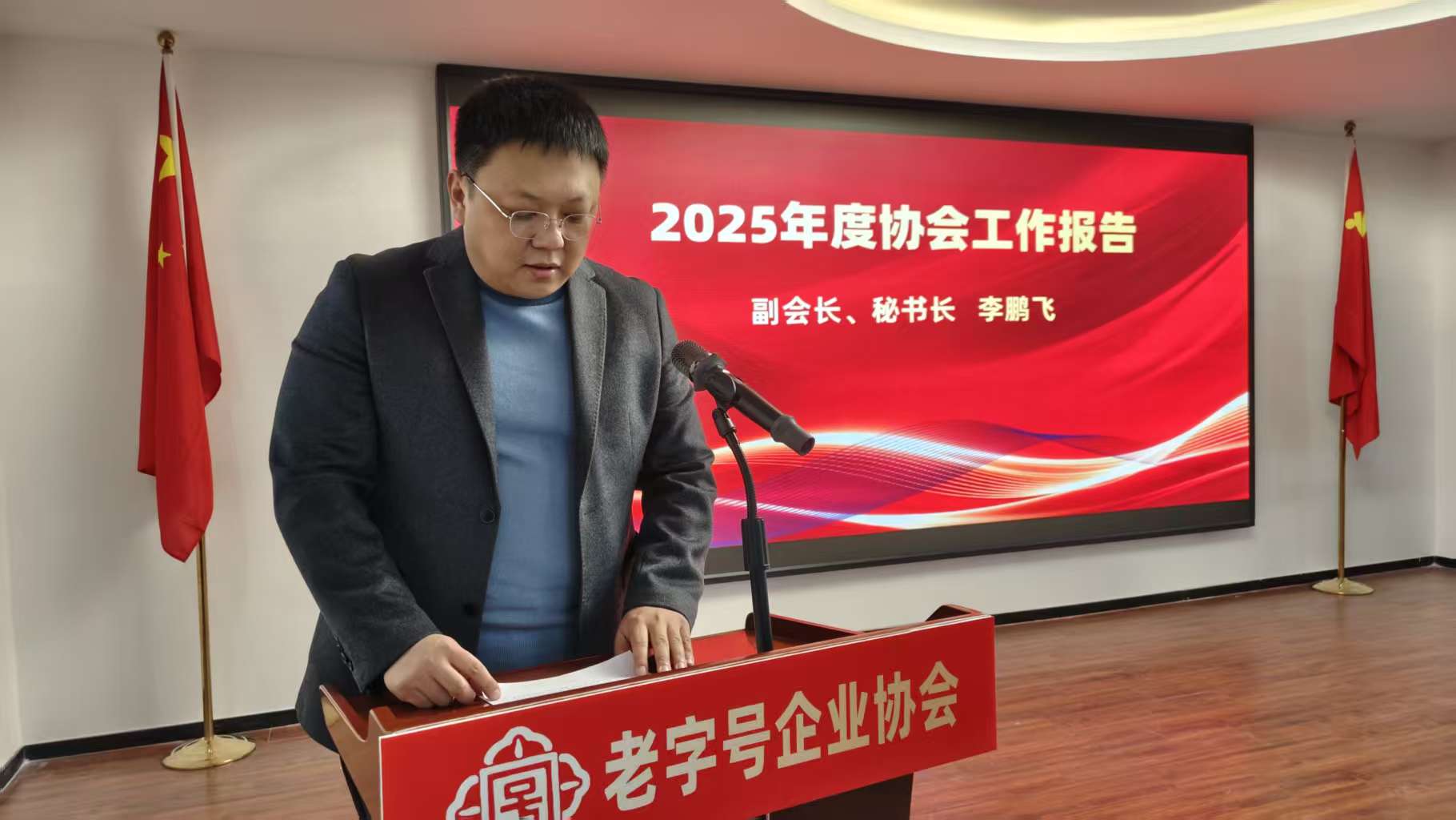 会议在庄严的国歌声中拉开帷幕。按照议程,协会秘书长李鹏飞作2025年度工作报告,全面回顾了协会成立近10个月来的阶段性成效。报告指出,协会自2025年3月成立以来,始终坚持“党建引领、守正创新、赋能发展”工作主线,创新践行“133”党建工作法,通过搭建多元化学习活动、立体化舆论宣传、常态化沟通合作三大平台,实现了老字号品牌影响力、企业综合实力、协会服务能力的同步提升,充分发挥了政府与企业间的桥梁纽带作用。