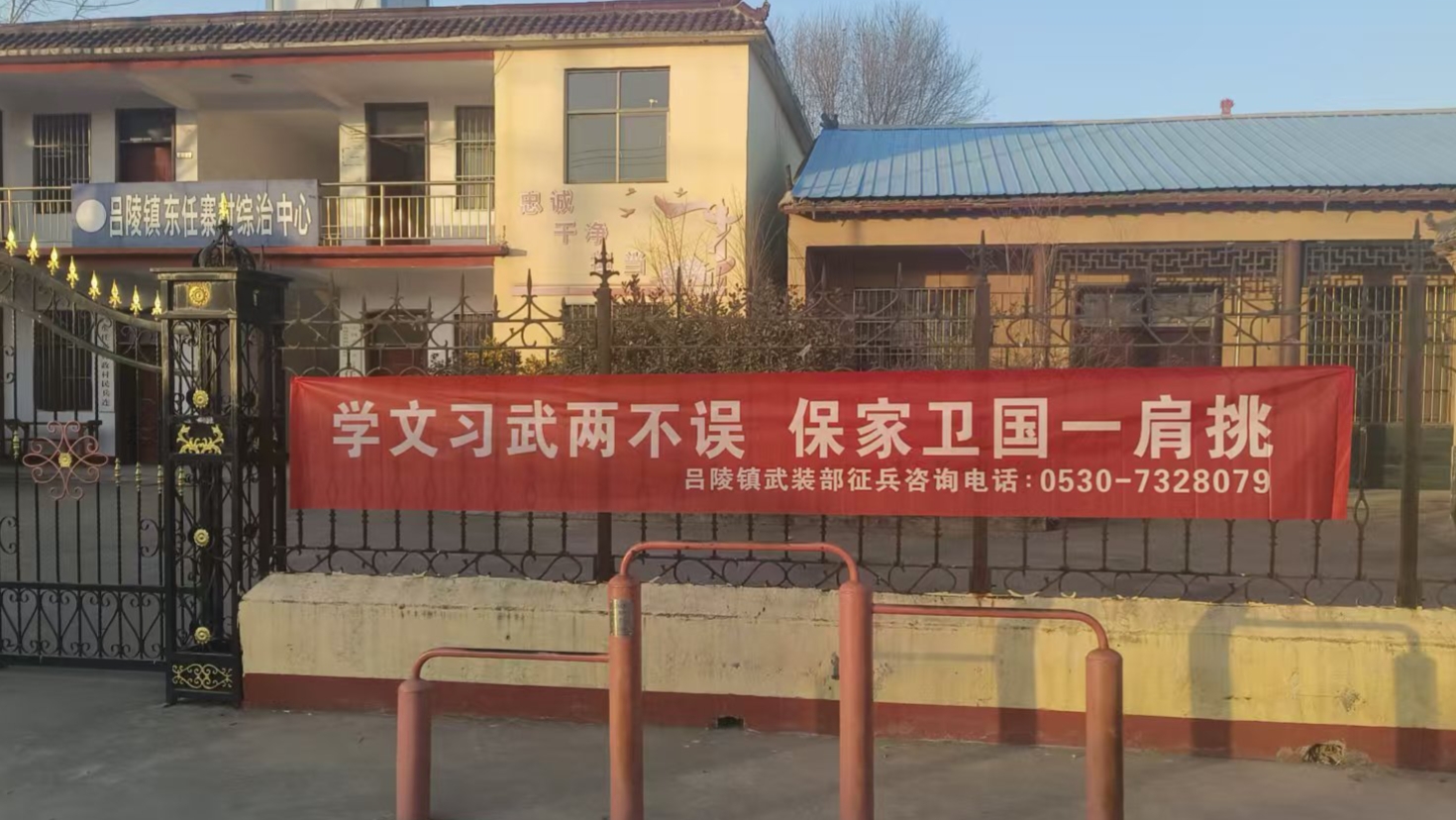 “学子当兵更光荣 文武双全最英武”“祖国选我服兵役 我服兵役为祖国”。走进吕陵镇的主次街道、各村委会大院、文化广场等人员密集场所,一幅幅色彩鲜明、主题突出的征兵宣传条幅醒目悬挂,简洁有力的标语将参军报国的理念直观传递给过往群众,实现“抬头可见、驻足能读”,让征兵信息全方位传播。