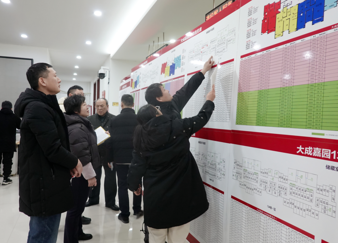选房现场暖意融融、秩序井然,等候区、选房区、咨询区等功能分区清晰明了。墙上的房源信息表、户型分布图标注详尽,工作人员各司其职,耐心为居民讲解选房流程、户型详情等关键信息,全程提供引导服务。