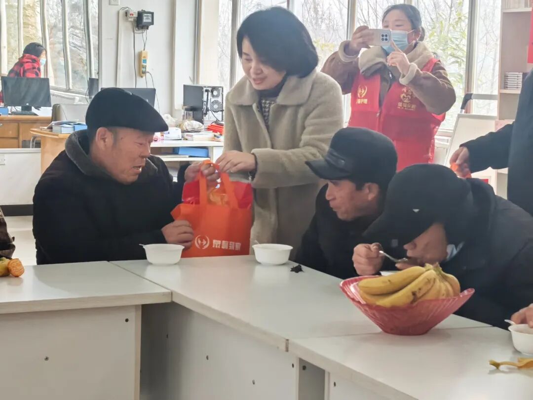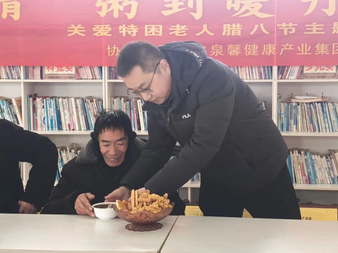 活动现场暖意融融,温情流动。隋宏伟、赵大庆与老人们亲切交谈,详细询问他们的身体状况和生活情况,并亲手将一碗碗热气腾腾、寓意吉祥的腊八粥端到老人手中。大家围坐在一起品粥话家常,笑语阵阵,洋溢着浓浓的节日氛围。随后,两位领导还为老人们送上精心准备的福字、新年挂历及暖心礼品,表达美好的新春祝福。