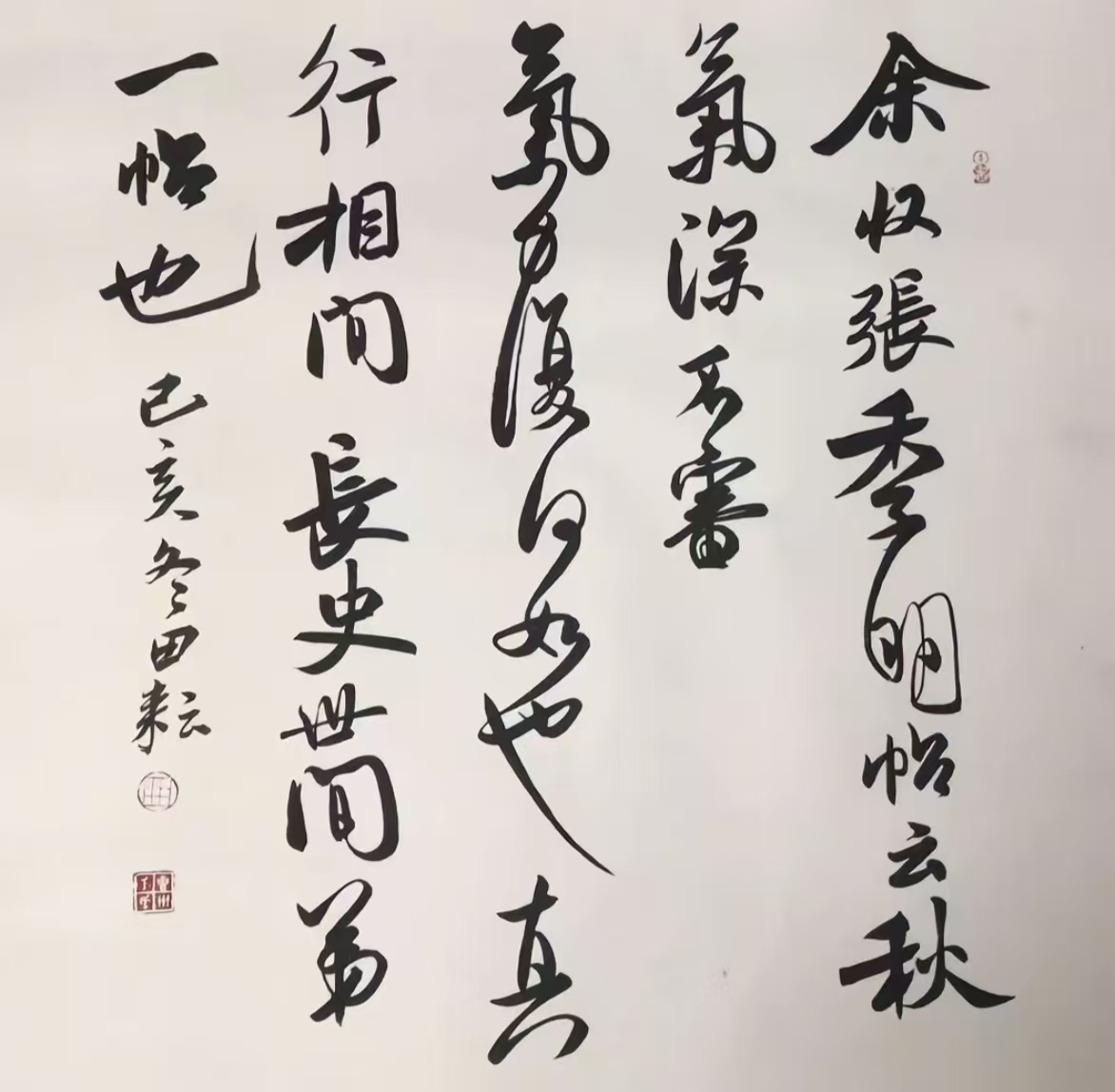 尤为可贵的是,田耘将数学专业的理性思维与书法艺术的感性表达有机融合,在数字化浪潮冲击汉字书写的当下,走出了一条传统艺术与时代潮流和谐共生的路径。她始终坚守笔墨初心,主动探索书法艺术的时代表达,将“天人合一”的传统理念与“内外兼修”的人文情怀融入创作实践,让作品既保留中华书法的核心精髓,又兼具契合当代审美的灵动气息。“书为心画”是她始终坚守的创作理念,她常从古典诗词、传统绘画中汲取灵感,在笔墨间传递对生活的热爱、对文化的敬畏。