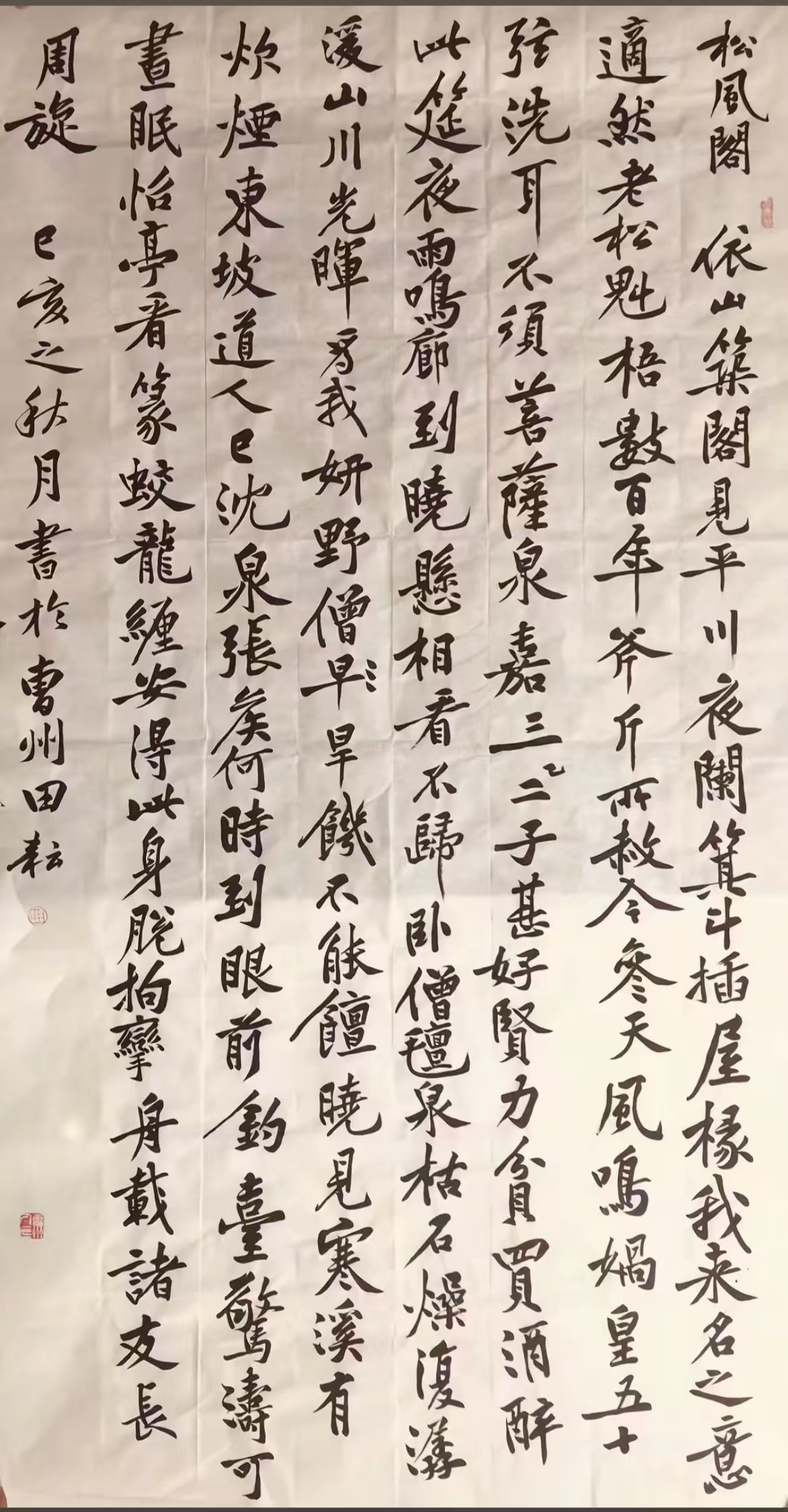文化的种子,往往孕育于家庭的滋养。田耘生长在一个浸润着书香的家庭,爷爷伏案挥毫的身影,是她童年最深刻的文化印记,也在她心中播下了对书法艺术的热爱。小学时期,田耘便开启了笔墨修行之路,专注楷书、隶书研习,临摹曹全碑、礼器碑等经典碑帖,潜心揣摩颜真卿、柳公权、欧阳询、赵孟頫等书法大家的笔墨精髓,在一笔一画的锤炼中夯实基础。进入初中后,她精研赵孟頫《三门记》,精准把握笔画的提按转折与字体结构的严谨平衡;同时涉足行书,以《兰亭集序》为范本,领悟笔势的连贯韵律与线条的灵动之美,书法造诣在日积月累中稳步精进。