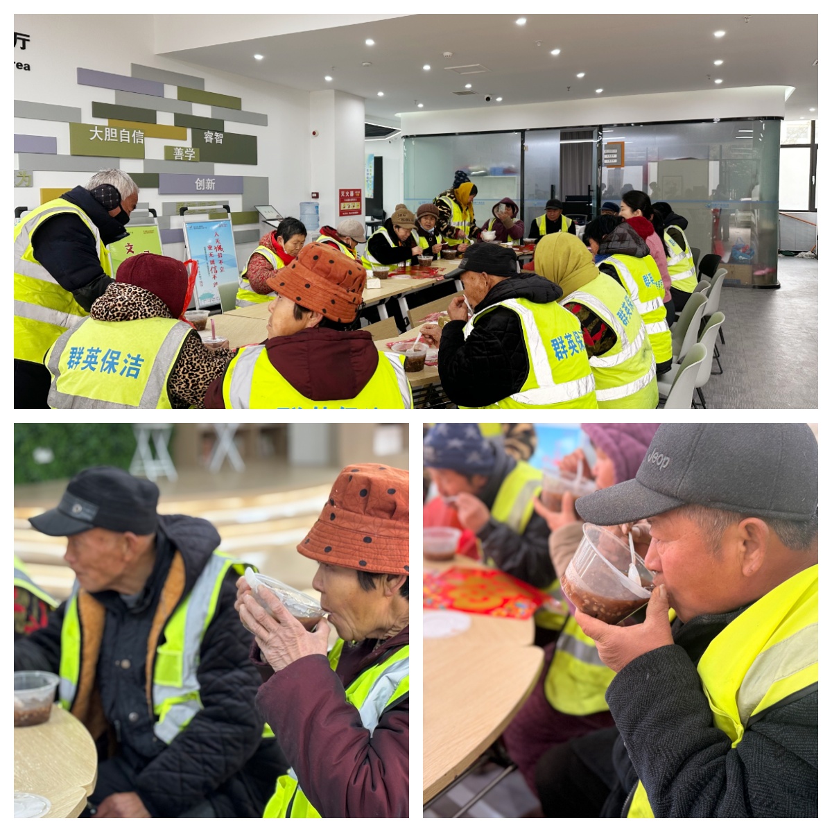接过粥品与福联的环卫工人们面带笑容,暖意融融。不少人在忙碌的清晨作业后,于此驻足小憩,品尝甜粥,细看春联,感受着来自街道的贴心问候。这份朴素而实在的关怀,让平日辛勤劳作的“城市美容师”们,从手中粥碗的温热里,真切地感受到一份暖意涌上心头。