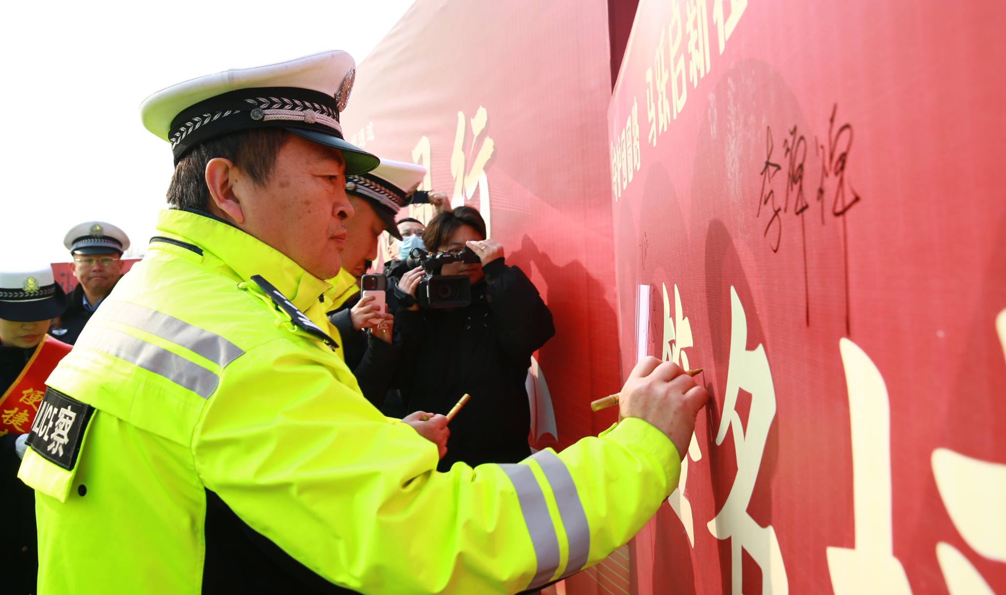 随后,参会代表人员、驾驶员代表及志愿者代表等进行了安全宣誓,并依次在主题墙前郑重签名,以实际行动践行春运安全承诺。