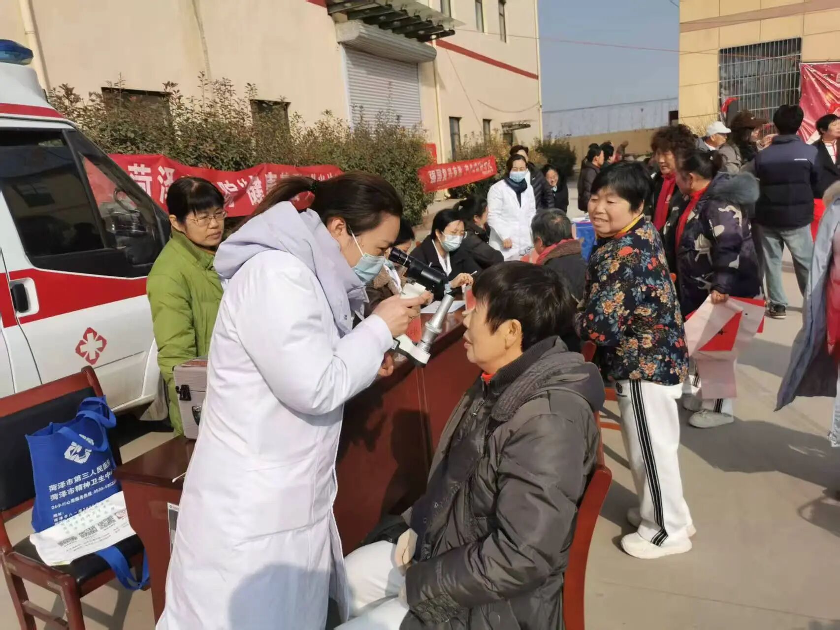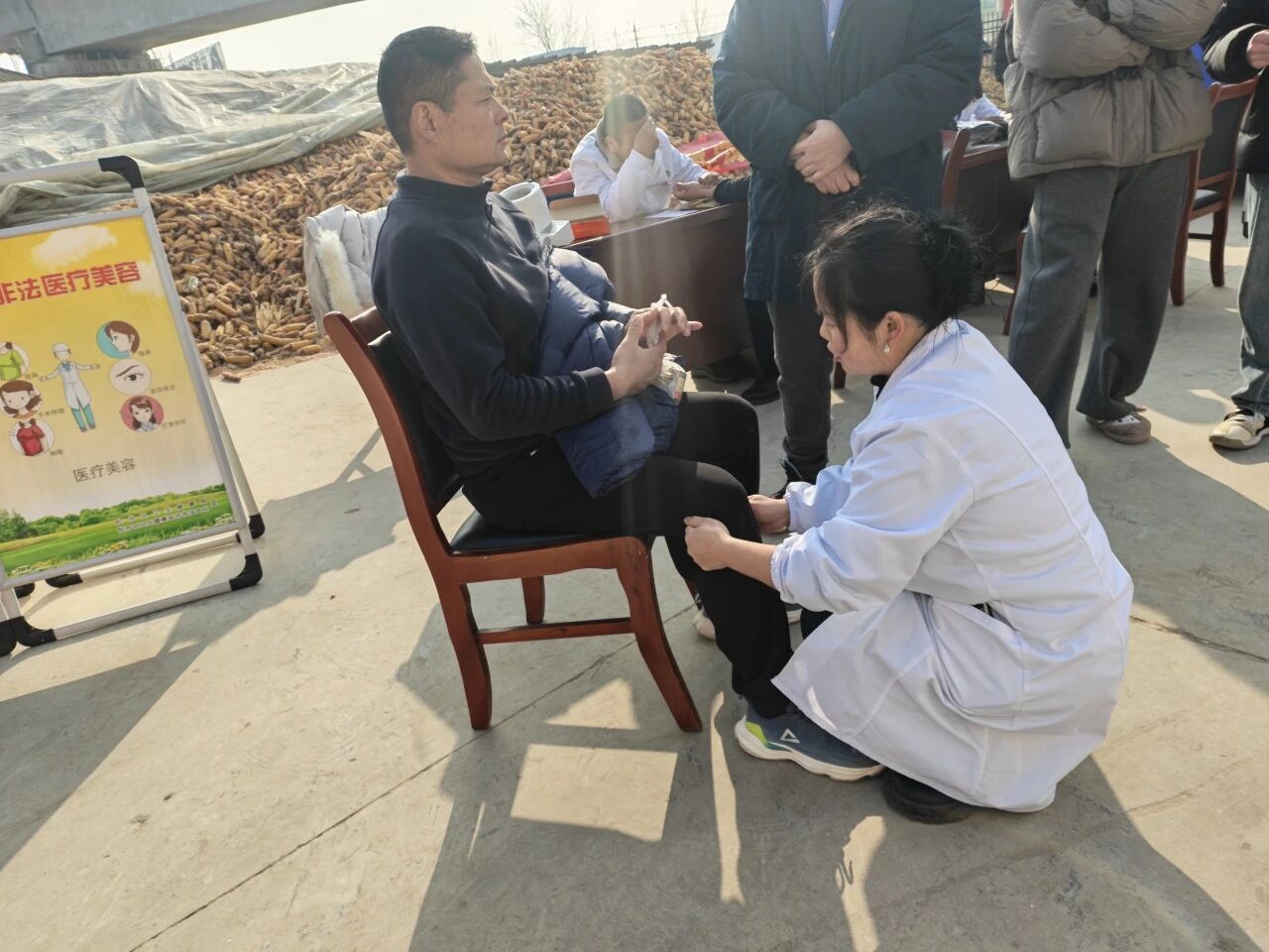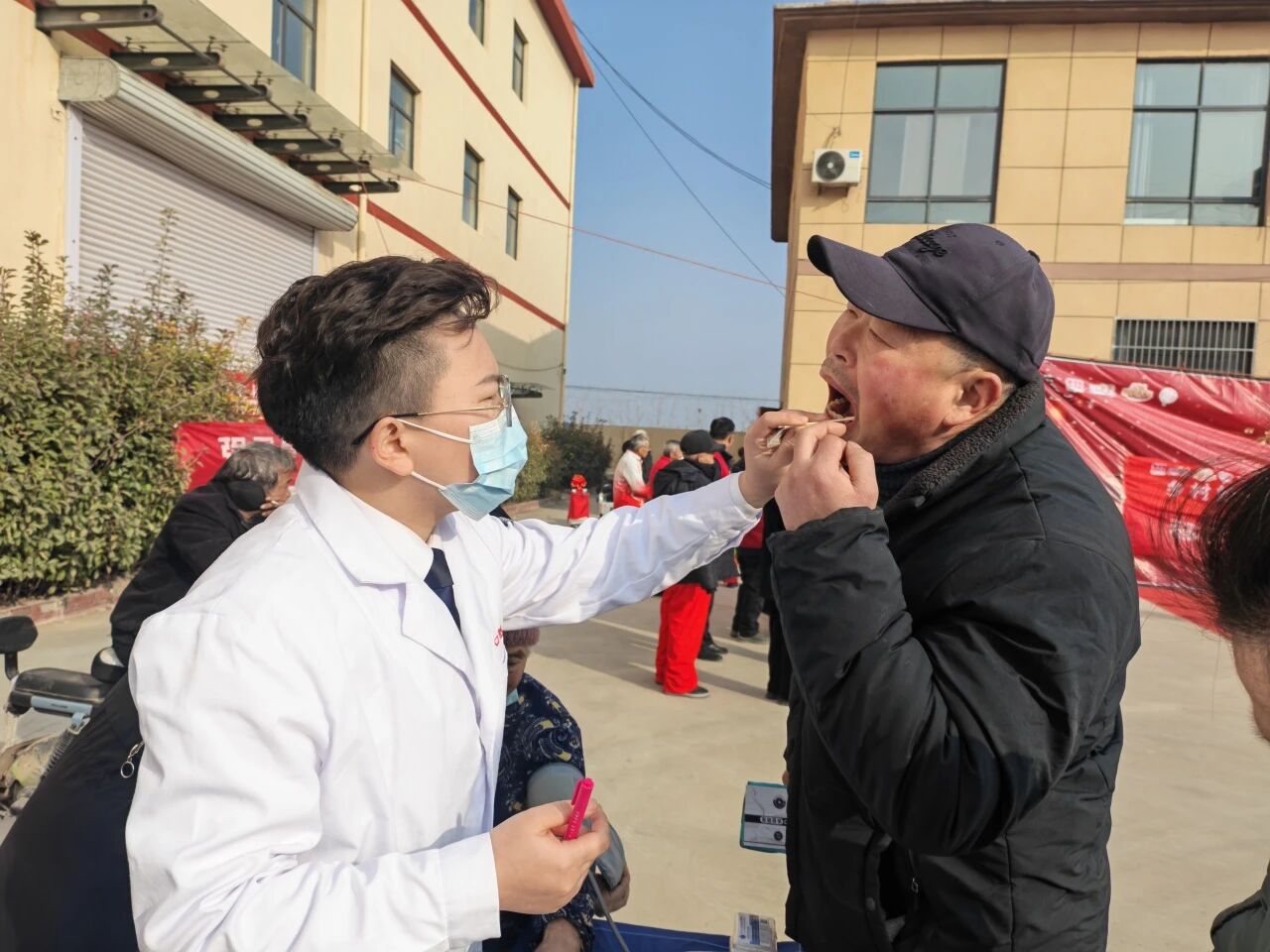 活动现场,文艺惠民演出在欢腾的锣鼓声中拉开帷幕,由志愿服务队编排的歌舞、杂技等节目轮番登场,既有传统韵味,又具时代气息。演员们精神饱满、情绪昂扬,将乡村振兴、文明新风、幸福生活等主题融入表演,赢得观众阵阵掌声。集市区域内,本地特色农产品、传统手工艺品、年节食品琳琅满目,吸引众多群众驻足选购,叫卖声、笑语声交织,升腾起浓浓的生活气息与节日温情。在义诊服务区,来自菏泽市第三人民医院、仁春堂中医馆、曹州口腔医院的医护人员为居民提供血压测量、健康咨询、口腔检查等服务,累计服务群众200余人次。