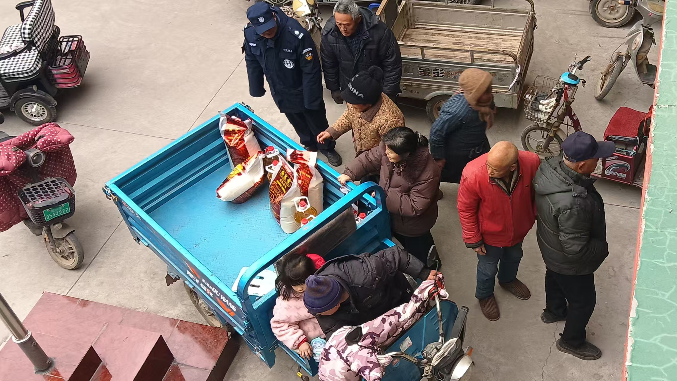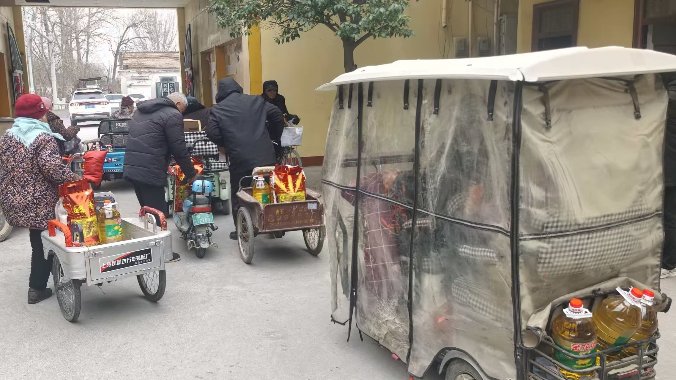 2月6日,在贾坊社区开展60岁以上老人春节福利发放活动,为老人们送上米、面、油等福利,把党和政府的关怀实实在在送到心坎上。活动现场一派热闹温馨的景象。社区工作者以及志愿者们早早将大米、食用油等物品整齐摆放,老人们陆续赶来,有的骑着电动三轮车,有的结伴步行,脸上都洋溢着喜悦的笑容。随后社区工作者以及志愿者们亲切地与他们唠起家常,询问起他们目前的身体情况、生活状况及存在的困难等,并且叮嘱他们要保重身体,注意保暖,生活上如有困难找社区,工作人员将尽最大能力帮助解决。“大娘,您慢点,我帮您把油搬上车!”“大爷,年货拿好,祝您春节快乐!” 社区工作者以及志愿者们一边热情地招呼着老人,一边有条不紊地为大家登记、发放福利,还主动帮行动不便的老人把年货搬上车。“每年过年社区都想着我们,给发米发油,心里真敞亮!” 刚领到福利的李大妈笑得合不拢嘴,连连为社区的贴心举措点赞。前来领福利的老人们你一言我一语,现场欢声笑语不断,浓浓的年味在大家的笑容里传递。