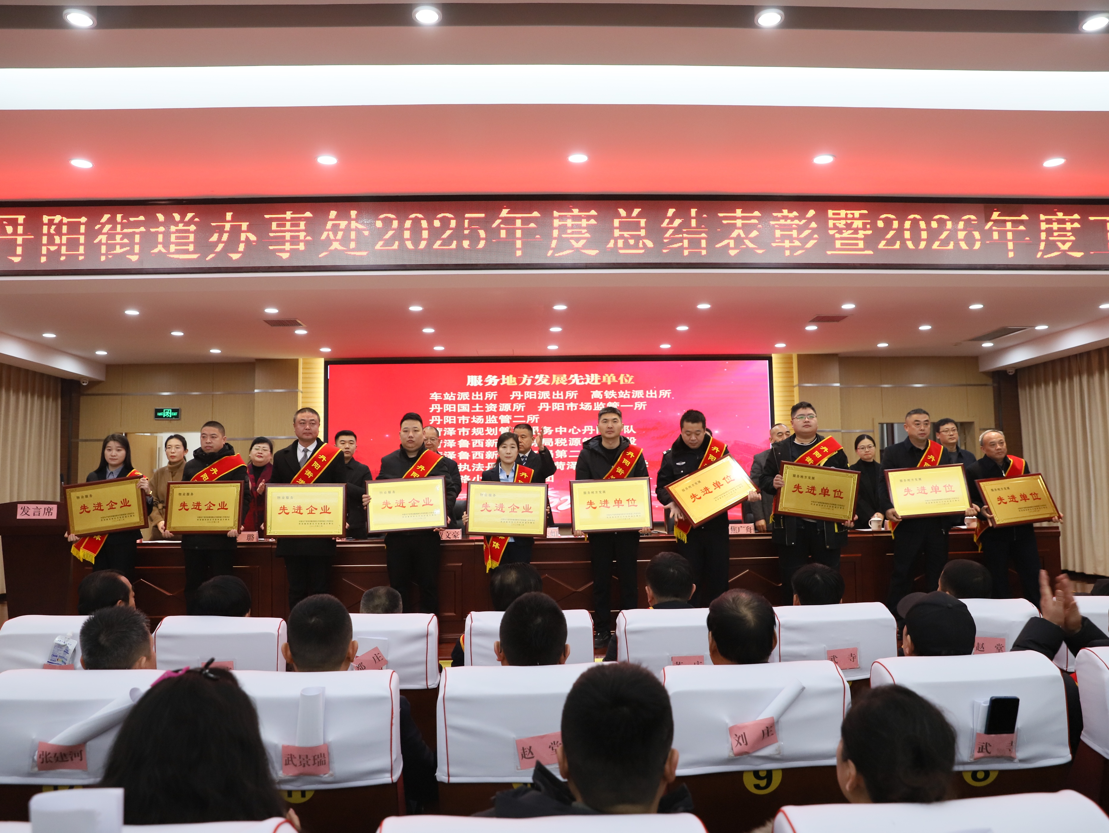 2月8日上午,菏泽鲁西新区丹阳街道隆重召开2025年度总结表彰暨2026年度工作部署会。会议全面回顾2025年经济社会发展成就,表彰先进典型,部署2026年重点工作,进一步凝聚全处上下干事创业合力,为“十五五”规划开局起步筑牢基础。会议由菏泽鲁西新区教育体育服务中心主任、丹阳街道党工委书记王庆如主持,街道副科级以上干部、区派驻单位负责人、各社区书记、辖区企事业单位负责人及受表彰先进代表等参加会议。