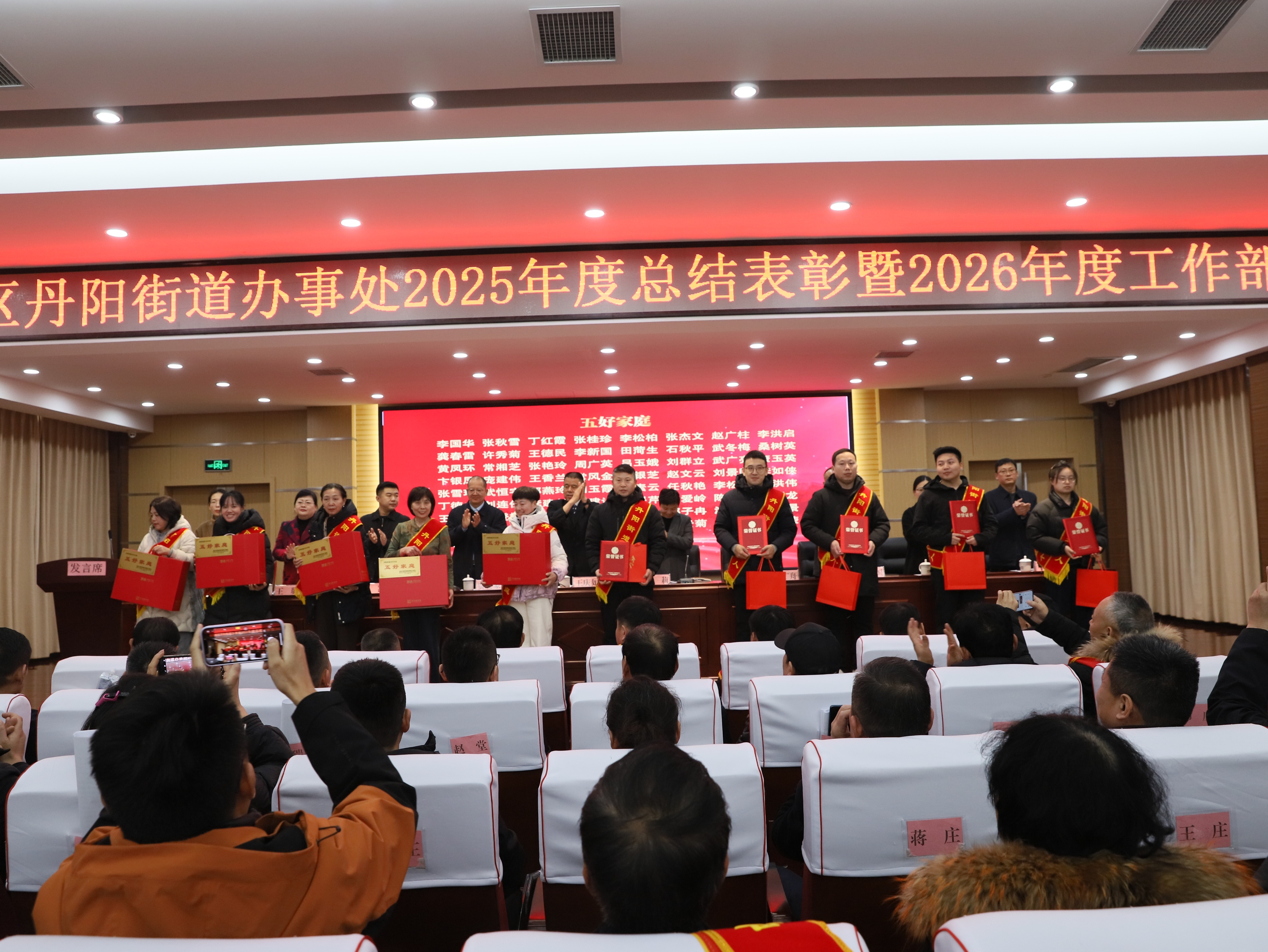 街道党工委副书记、办事处主任晁莉同志全面通报2025年工作成效。2025年作为“十四五”规划收官之年,丹阳街道在复杂环境中承压奋进,经济发展、城市建设、民生保障、安全稳定等各项工作取得亮眼成效,基层治理效能显著提升。2026年,丹阳街道将围绕治理效能提升、营商环境优化、重点项目落地、平安建设强化、民生实事办理等方面精准发力,以“万众一心加油干”的团结精神、“越是艰险越向前”的斗争精神、“不待扬鞭自奋蹄”的担当精神,奋力开创高质量发展新局面。