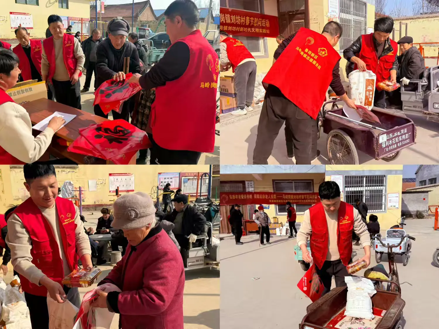 活动现场温馨祥和,处处洋溢着喜庆的节日氛围。村干部与志愿者们认真细致地为全村90余名70岁以上老人依次发放面粉、糕点和春联,在发放过程中耐心询问老人们的身体状况和生活实际需求,叮嘱老人们保重身体、安心过年,将最真挚的新春祝福送到每一位老人身边。针对行动不便的村民,志愿者还主动帮忙把慰问品送到三轮车上,方便大家安全返程。一位村民高兴地说:“不光给老人们发吃的,还准备了春联,想得太周到了!”一句句贴心话语,一个个暖心举动,让老人们真切感受到了党和政府的关怀与温暖,整个活动现场温情满满、暖意融融。