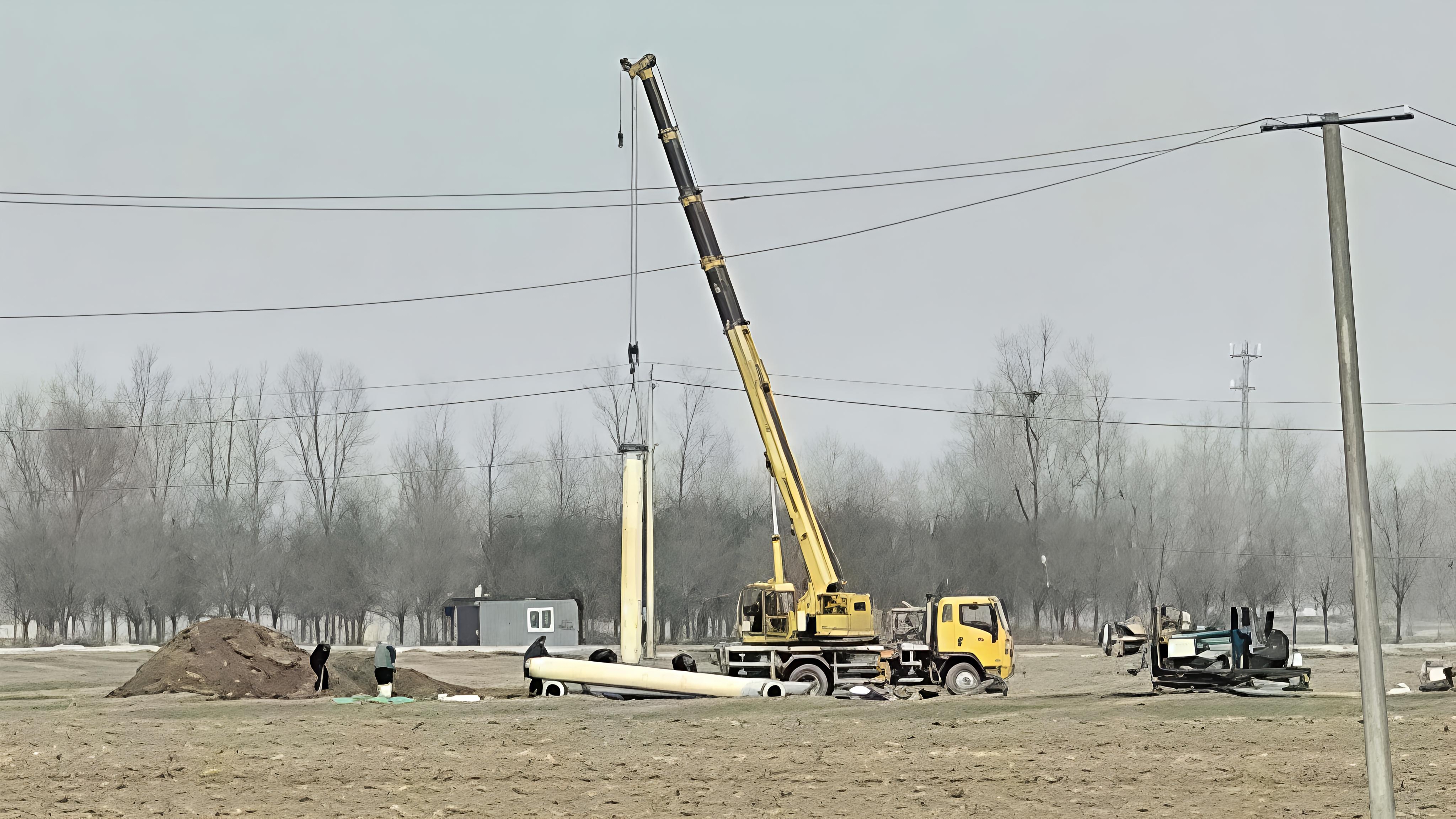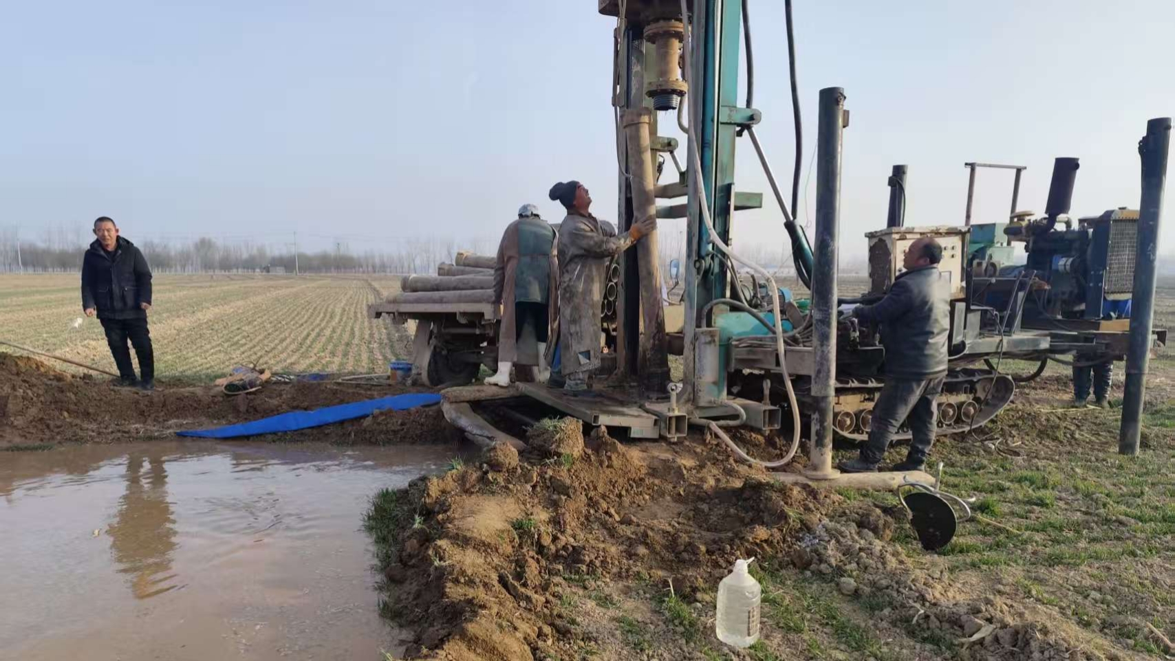 在小屯村的作业现场,钻井机的轰鸣声与施工人员的号子声交织在一起。履带式钻井设备高效运转,将湿润的泥土从地下不断带出,一旁的吊车精准吊装井管,施工人员密切配合,有条不紊地进行钻井、下管、固井等工序。村民们也主动加入,协助清理作业现场、搬运物料,大家心往一处想、劲往一处使,共同为改善灌溉条件而忙碌。