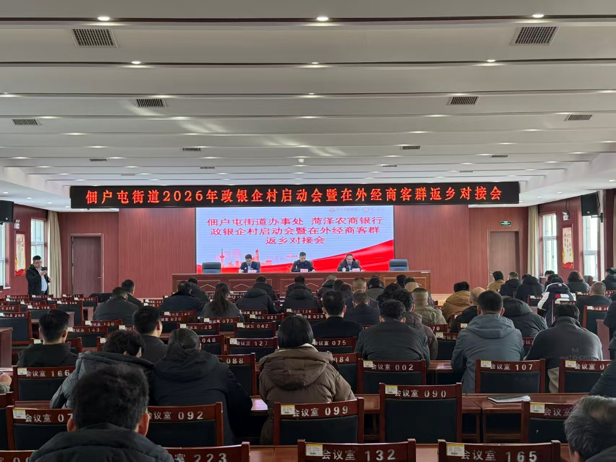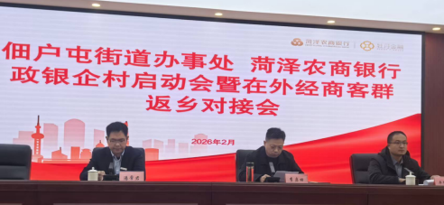 为搭建政银企村对接桥梁,破解返乡创业融资难题,助力地方经济高质量发展,2月12日上午,菏泽鲁西新区佃户屯街道办事处联合菏泽农商银行举办2026年政银企村启动会暨在外经商客群返乡对接会,邀请返乡创业乡贤、企业家代表齐聚一堂,共话发展、共商合作,为返乡创业兴业注入金融活水。