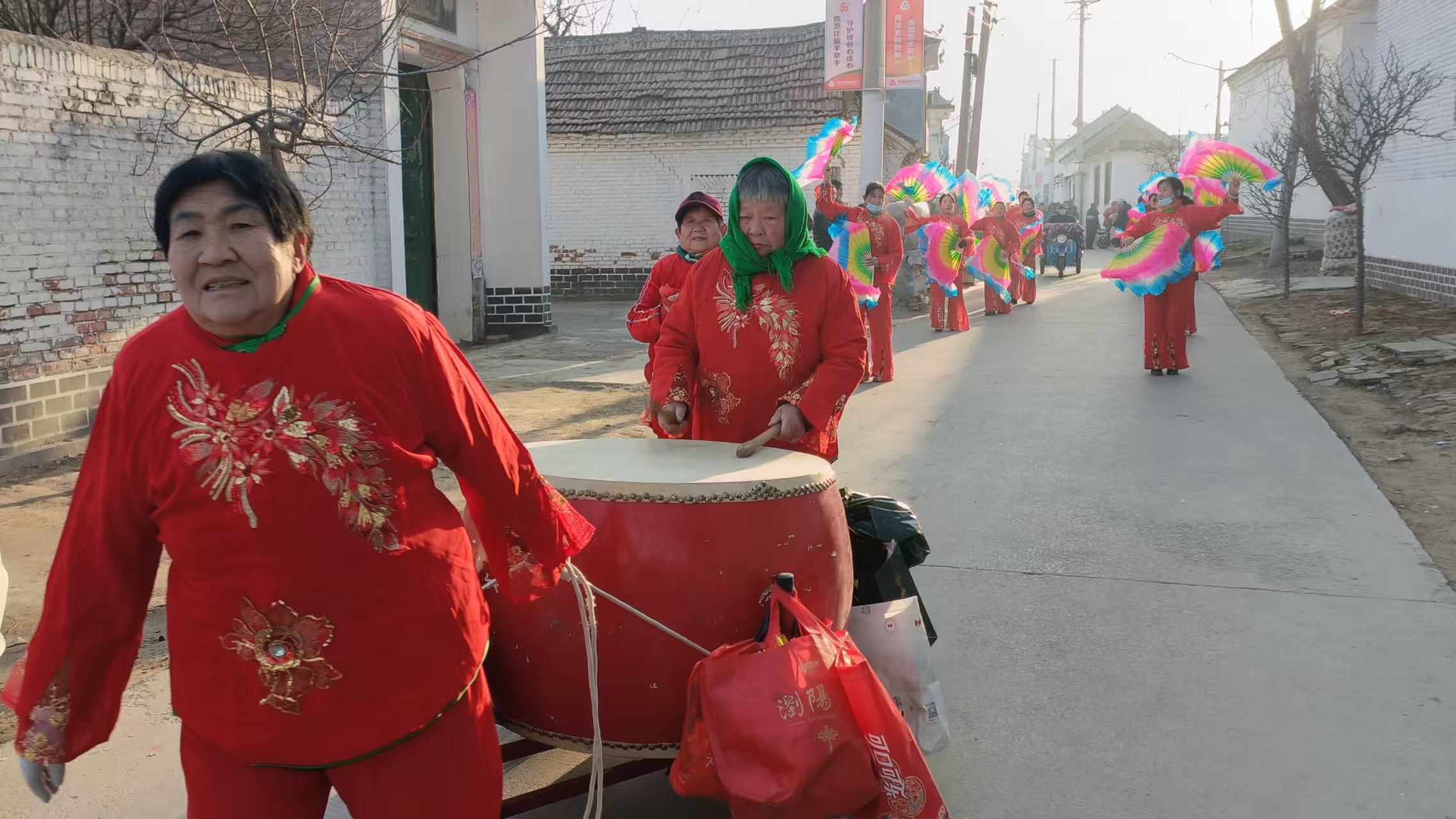 铿锵有力的锣鼓声敲出了群众蒸蒸日上的好日子,轻盈灵动的扇子舞跳出了乡村振兴的新气象,整齐划一的步伐、活力满满的姿态,将新春的喜悦传递到每一个角落。村民们纷纷驻足观看,不时拍手叫好,现场掌声、笑声、欢呼声交织在一起,汇成了一曲生动的乡村幸福乐章。
