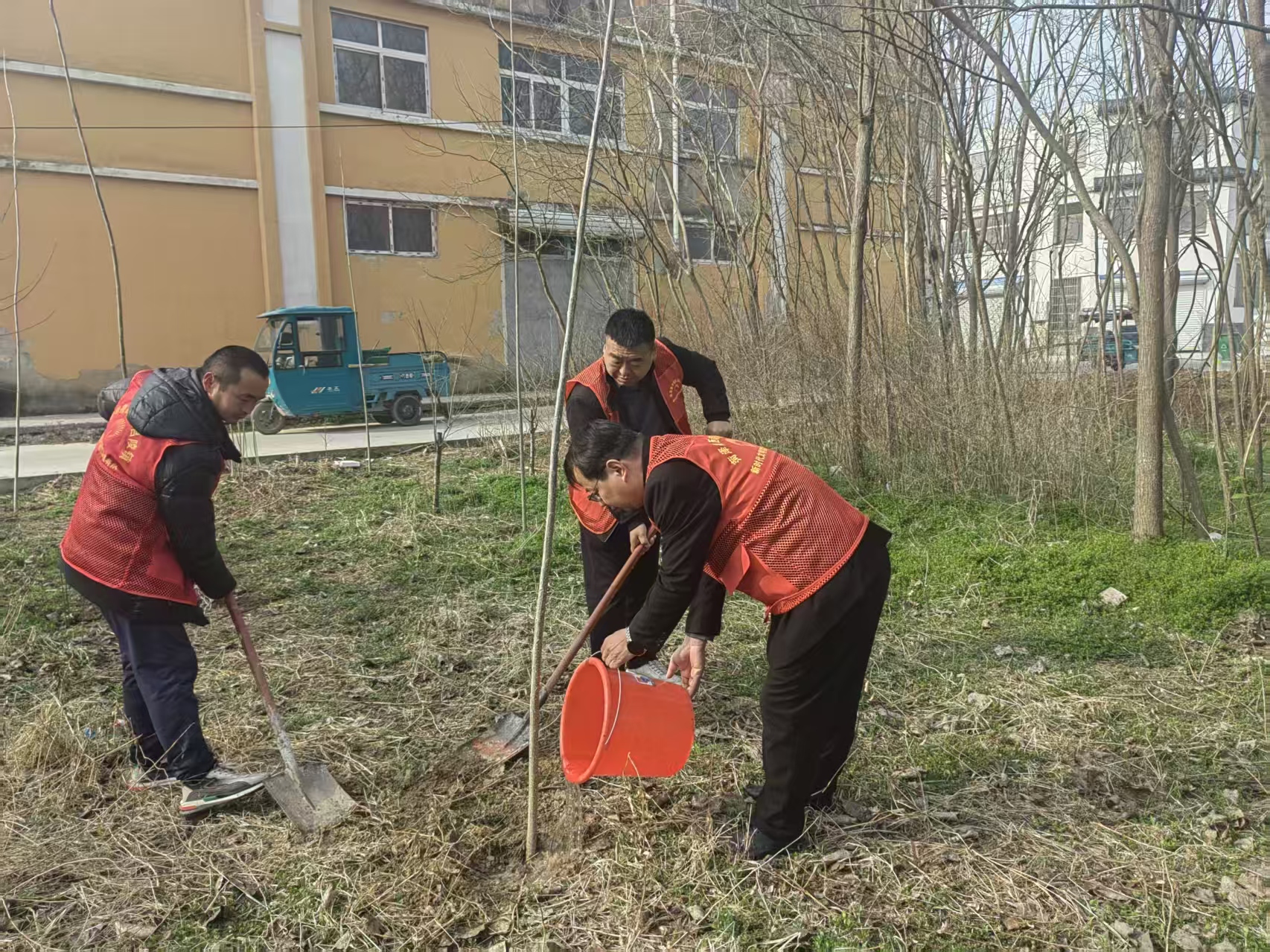 在各植树现场,处处可见忙碌的身影。从房前屋后的闲置空地,到村道两旁的绿化带,党员干部率先垂范、冲锋在前,志愿者们紧随其后、协同发力。大家挥锹挖坑、扶苗培土、浇水定根,配合默契,以劳动践行初心,以汗水浇灌绿意。经过共同努力,一排排新栽的苗木迎风挺立,为春日的吕陵镇增添了一抹盎然绿意。